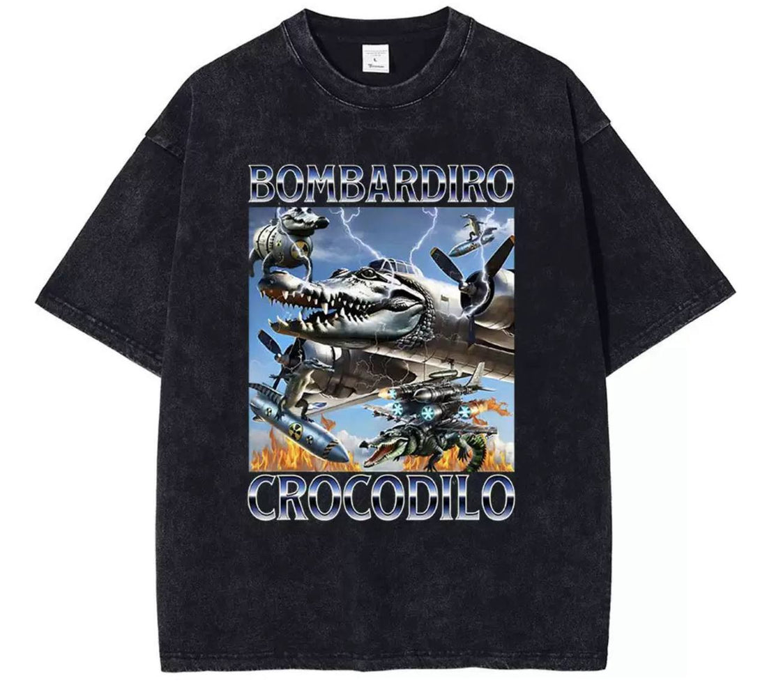 Brainrot Bombardiro Crocodile T-Shirt – Black Melange