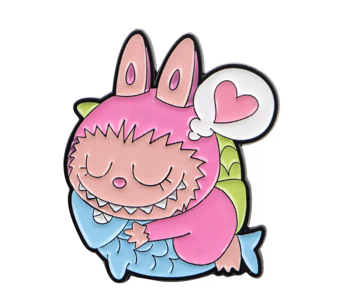 Metal Labubu (Labubu) Badge with Fish A unique metal pin badge featuring the Labubu character...