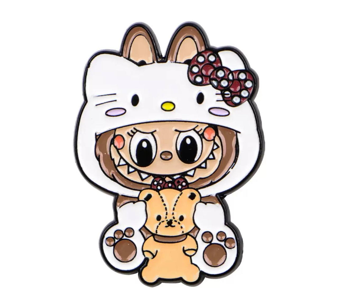 Metal badge of Labubu (Labubu) in a Kitty costume