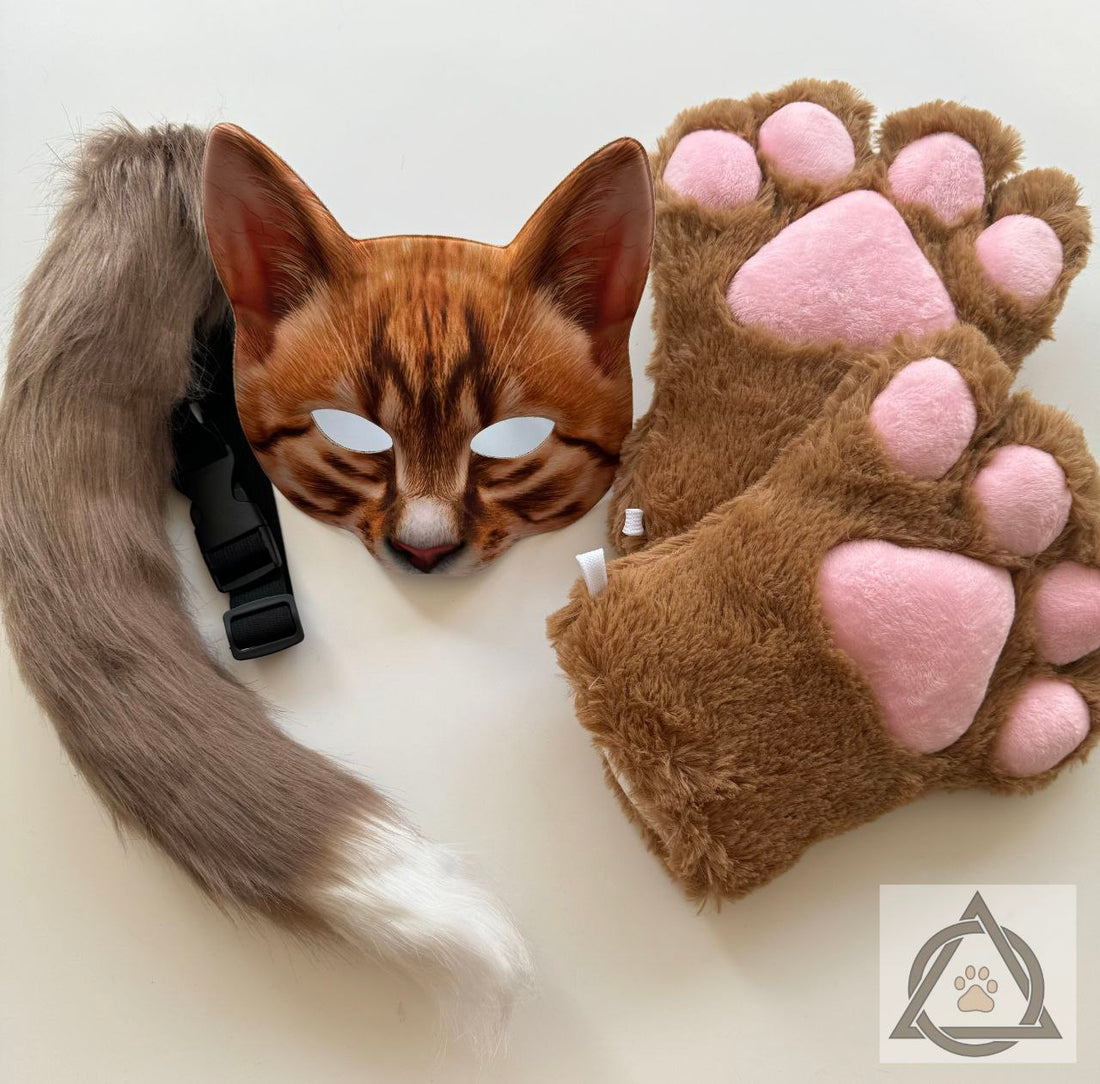 Quadrobics Set (mask, paws, ears, tail with clip) - Ginger