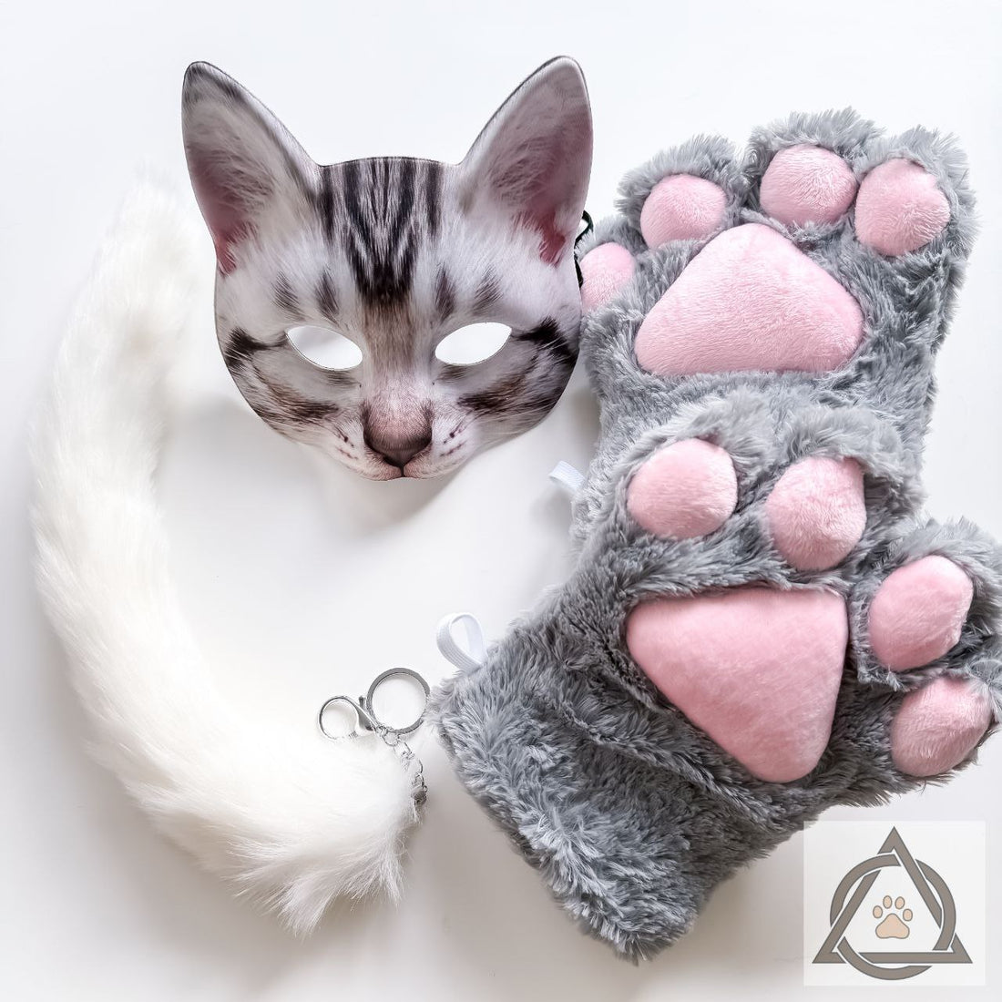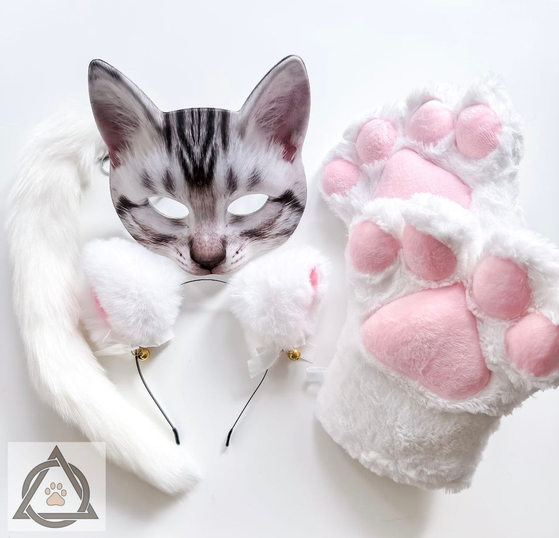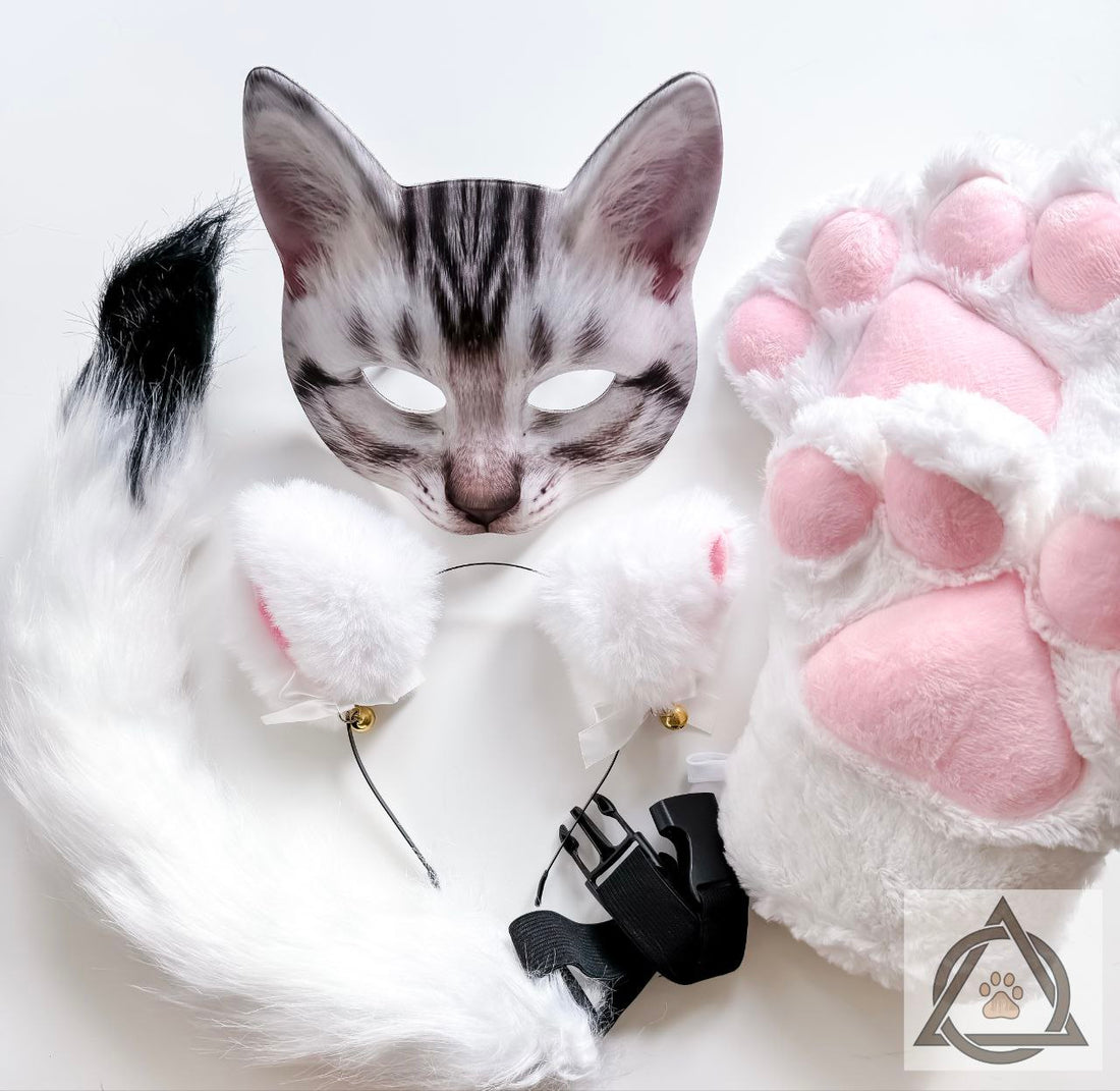 Quadrobics Set (Mask, Paws, Ears, Tail with Carabiner) White This set includes: ⦁ A plastic...