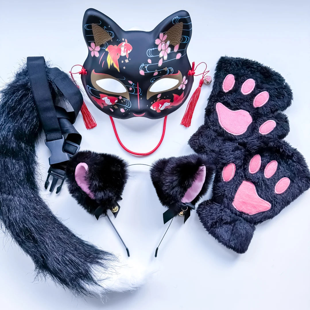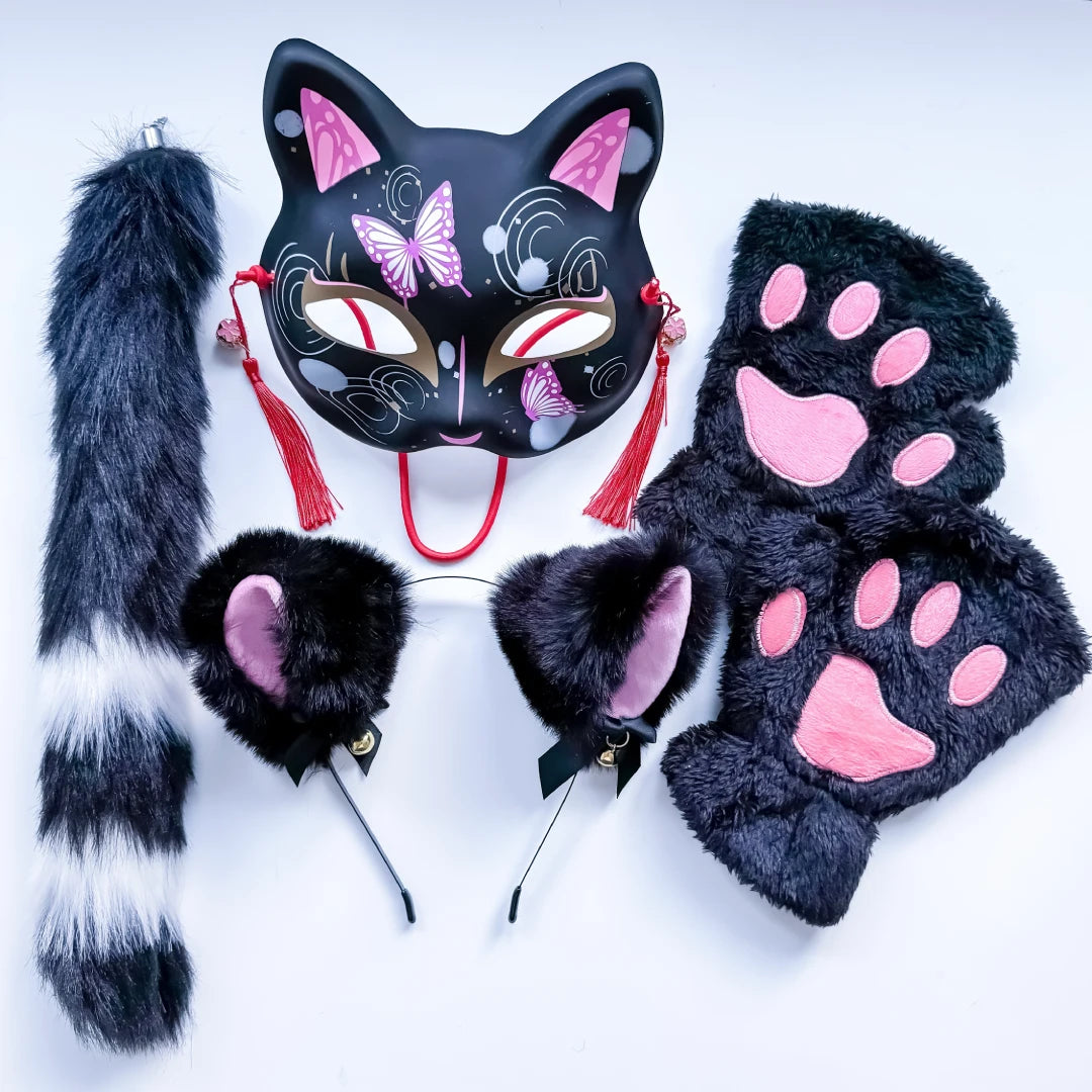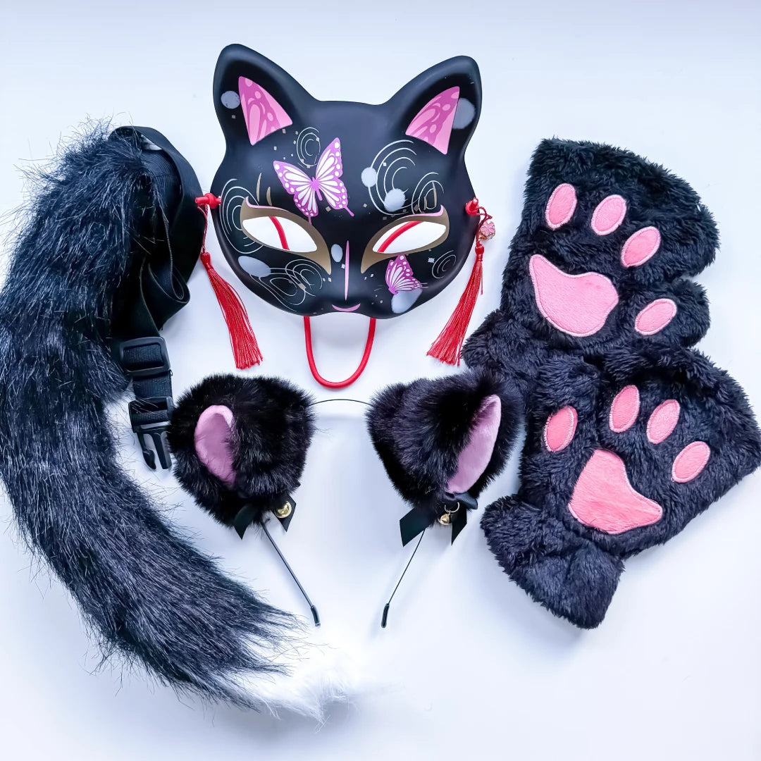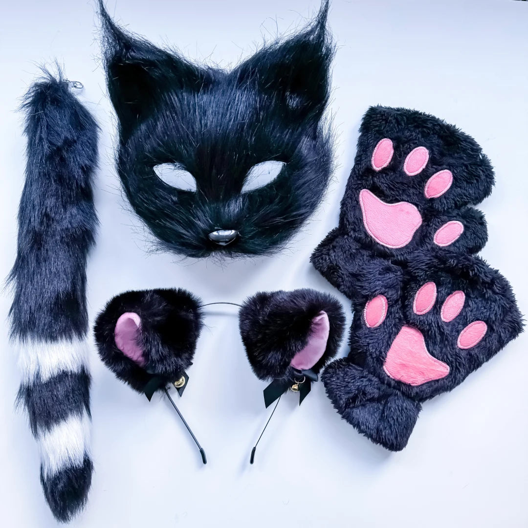 Quadrobics Costume Set (Mask, Paws, Ears, Tail on Strap) - Black This set includes: Plastic...