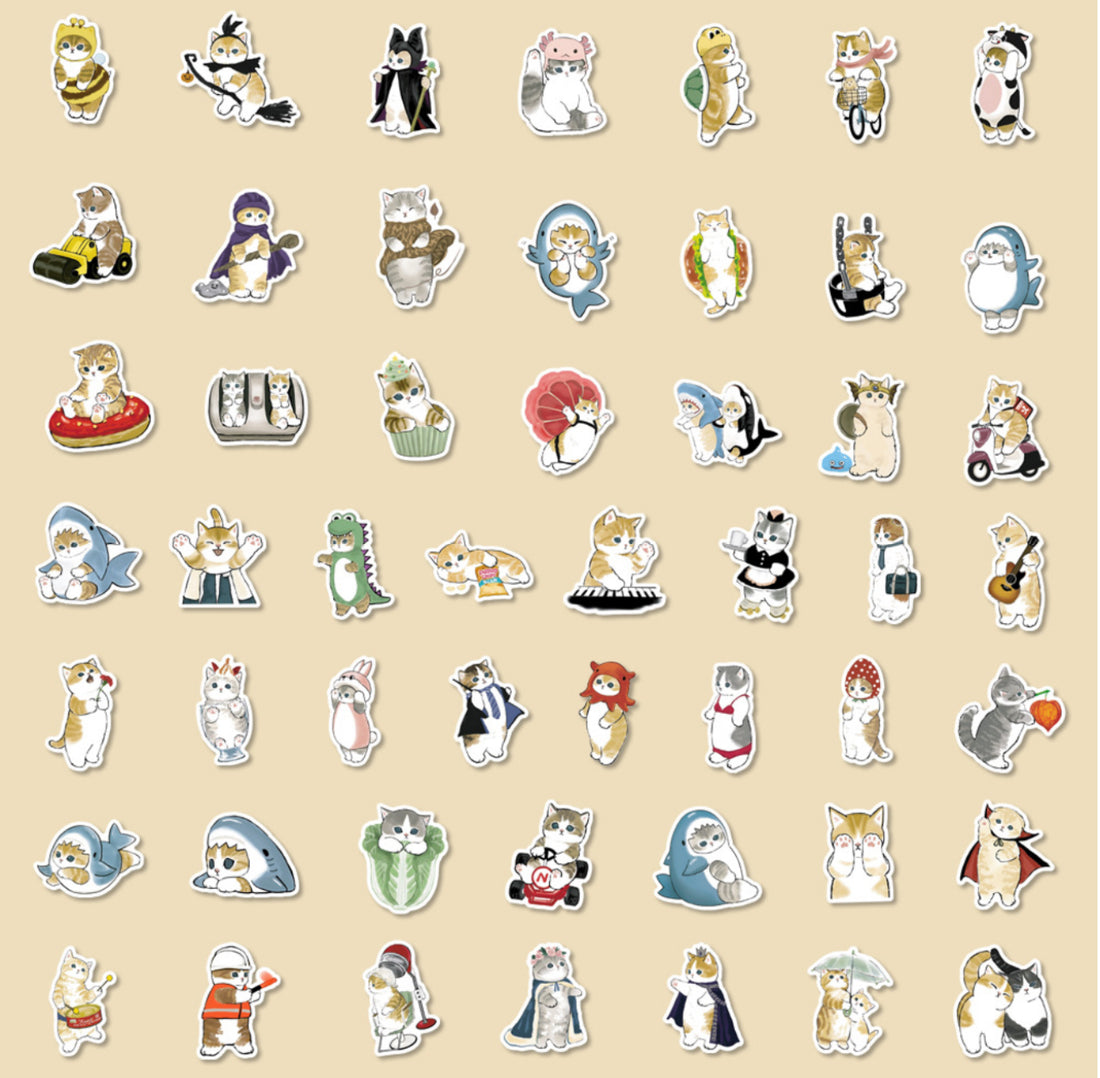 50-Piece Cat Stickers Set A set of cat-themed stickers — 50 unique decals that will...