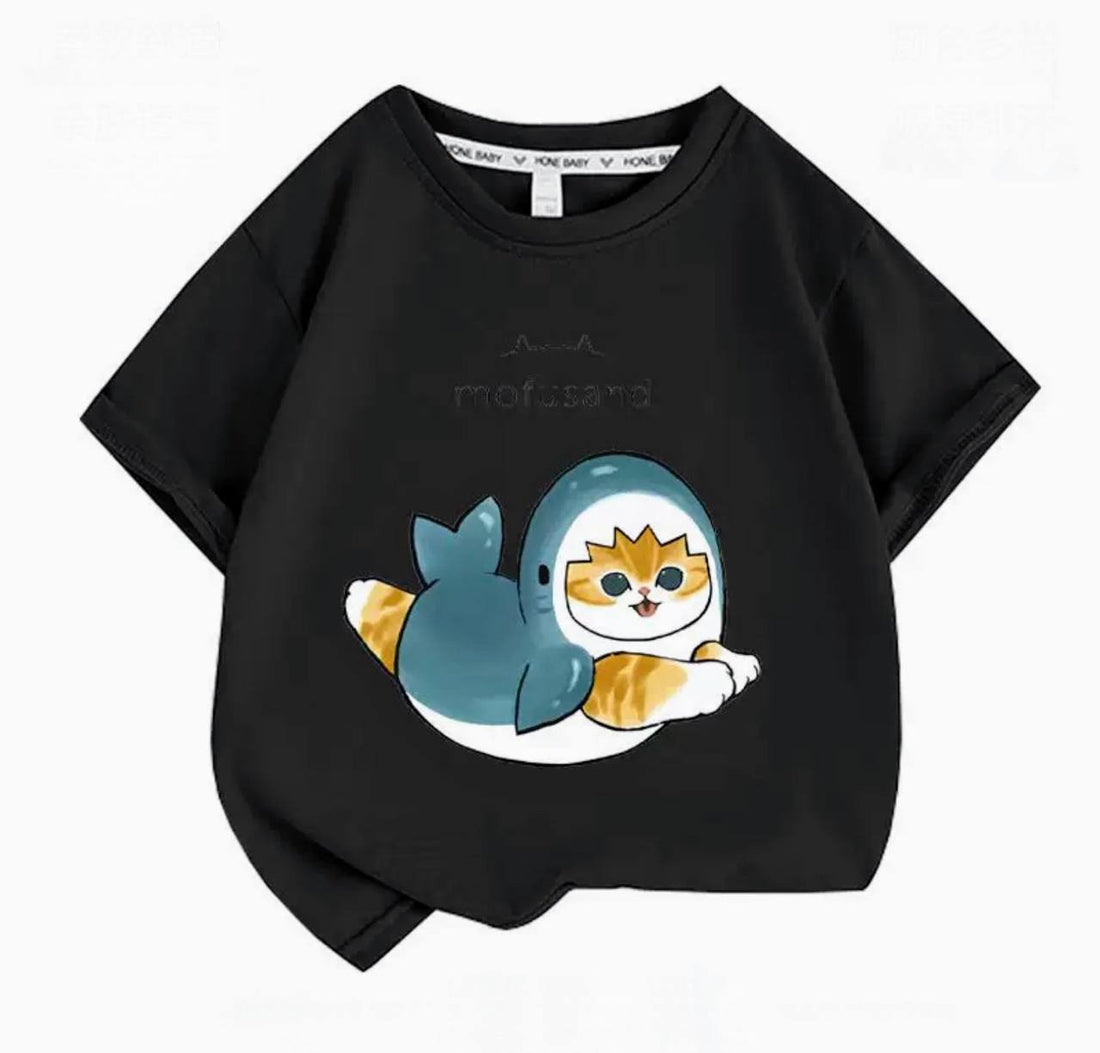Kids' T-Shirt "Kitten in a Shark Costume" Black A fun and comfortable T-shirt featuring a...