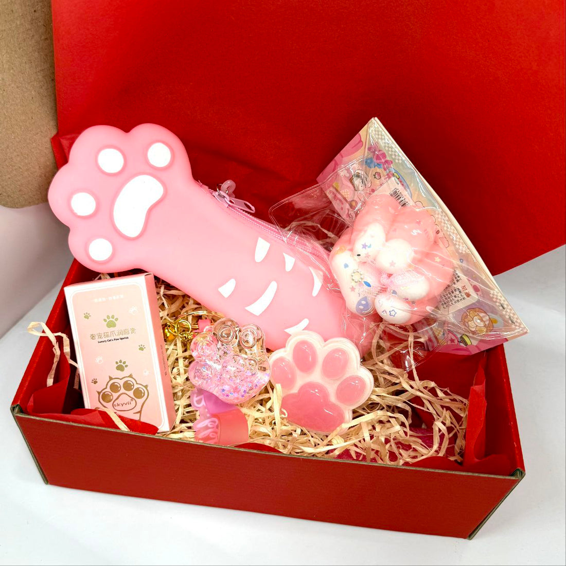 Gift Set "Cat's Paw" (pencil case, paw print sticker, balm, keychain, popsocket)