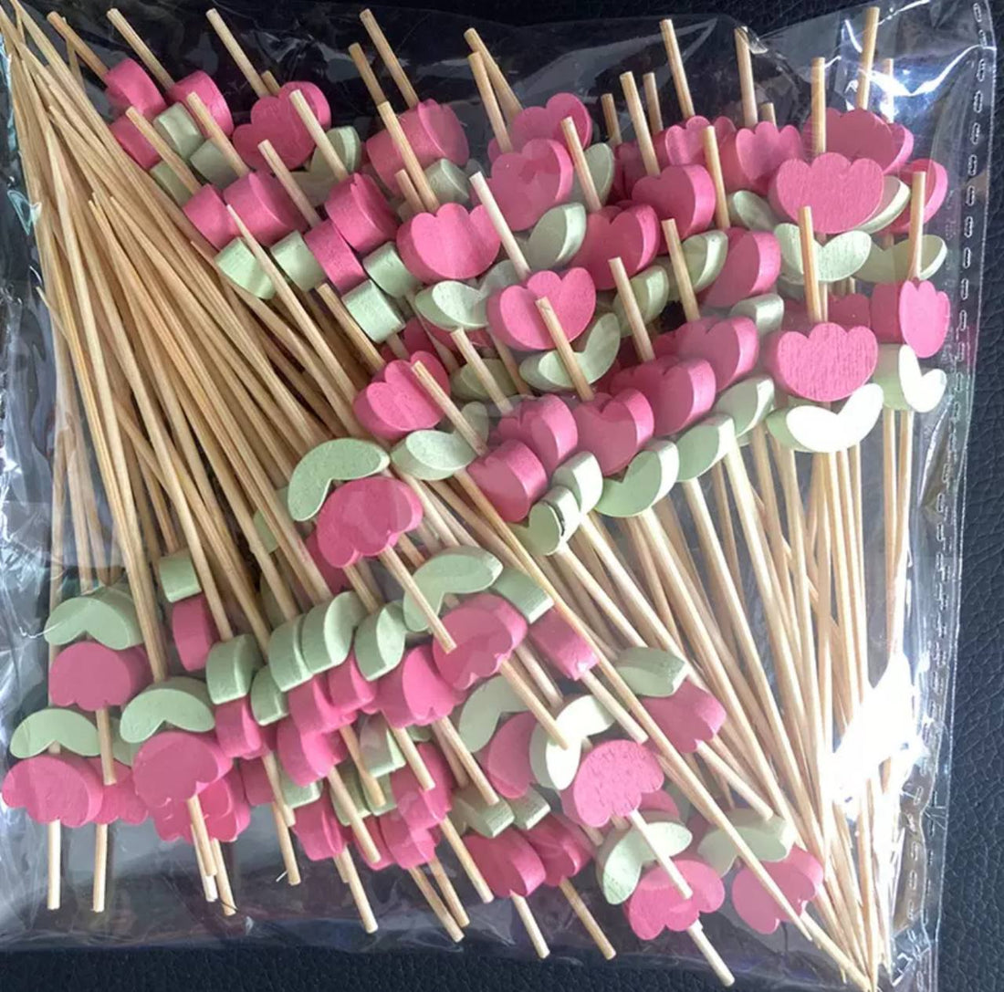 Wooden Heart-Shaped Decoration Skewers (50 pcs)
