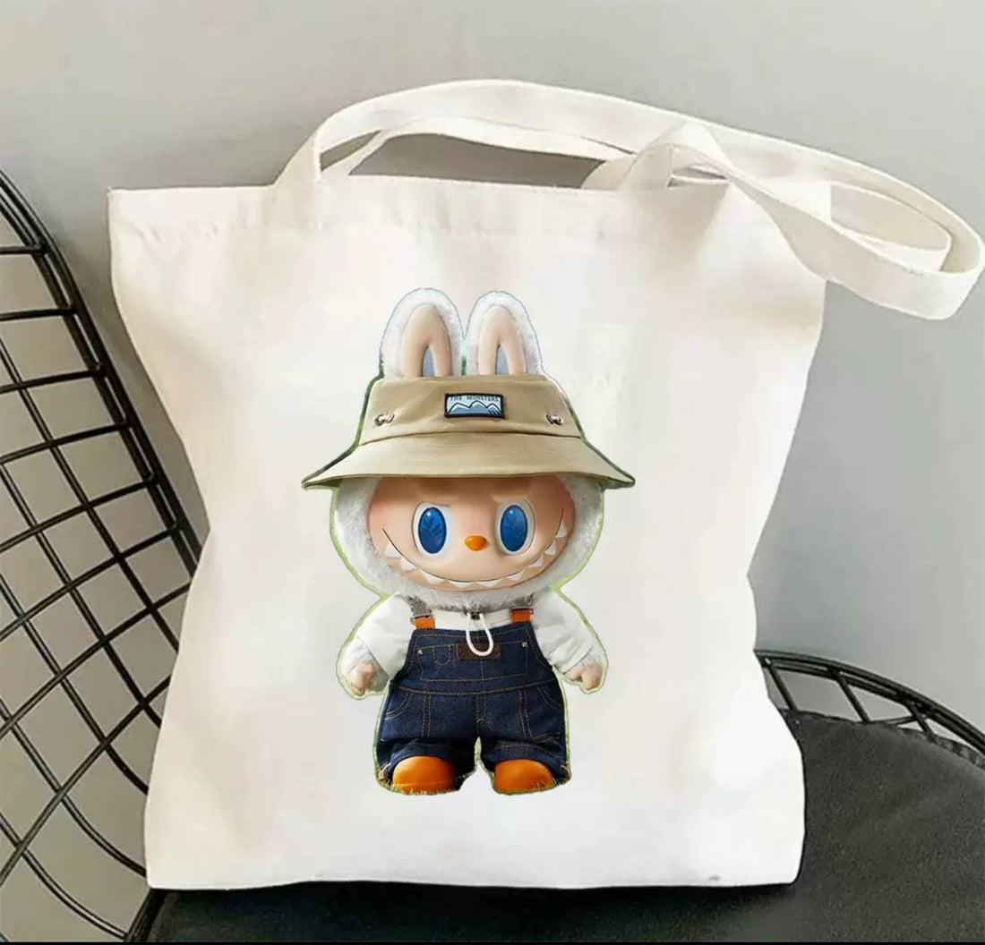 Labubu White Shopper Bag A stylish textile shopper featuring a vibrant print of the Labubu...