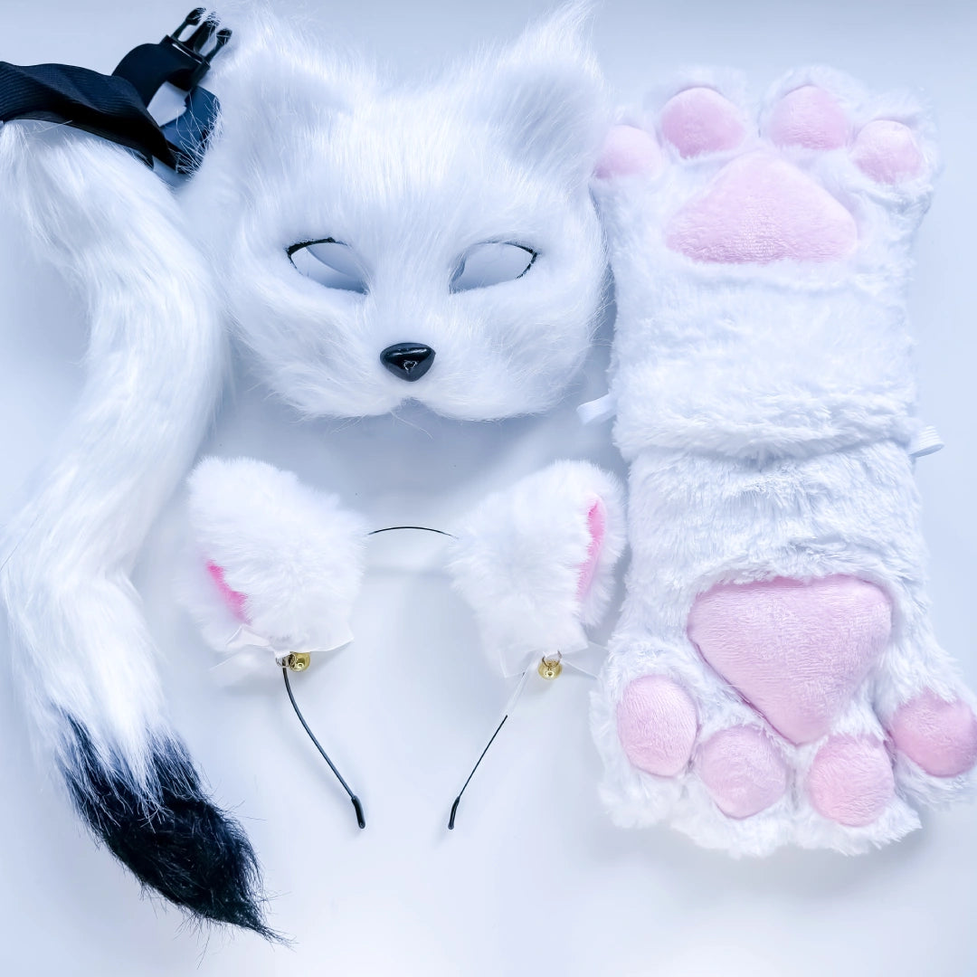 Quadrobics Costume Set (Mask, Large Paws, Ears, Tail on Strap) - White