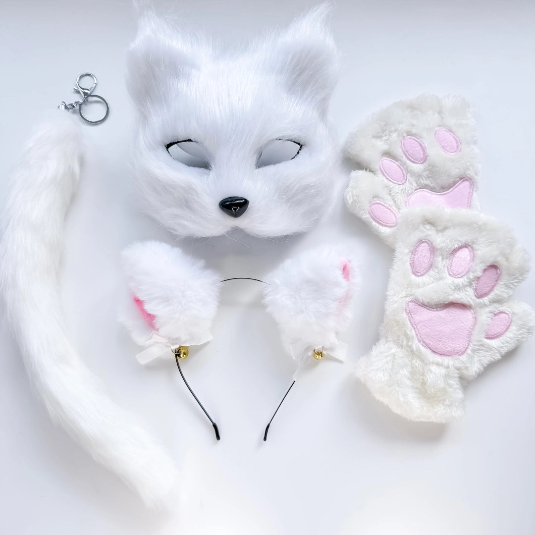 Quadrobics Costume Set (Mask, Paws, Ears, Tail with Carabiner) - White