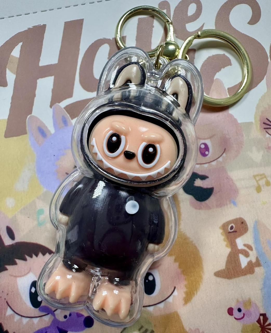 Discover the adorable Labubu "Have a Seat" collectible keychain series — featuring unique characters with toothy grins and pointy ears, each with their own mood and color! Each blind box contains a surprise, as the keychains are sold in a mystery format — you won’t know which character you’ll get until you open it. These fun accessories make a bright addition to your keys, backpack, or bag, or make a perfect gift. The figure stands 10 cm tall.