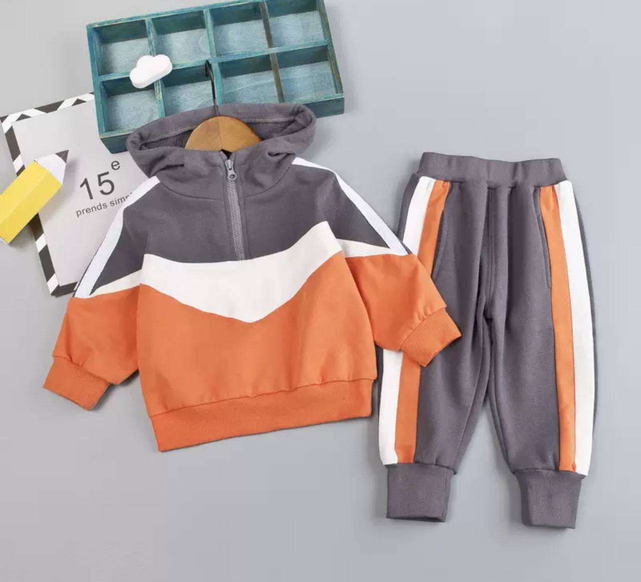 This kids' sports set is perfect for active play and everyday outings. It features a hoodie with a zipper and comfortable pants with an elastic waistband and cuffs. Made from soft knit fabric, the outfit offers all-day comfort and freedom of movement. The stylish design with contrasting accents adds a unique touch, making it bright, modern, and fun.
