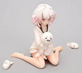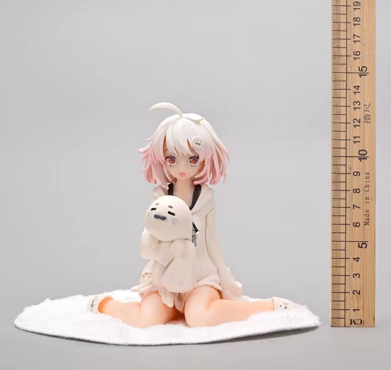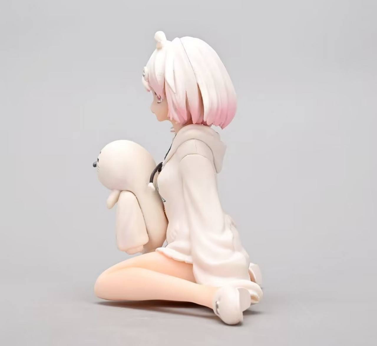 A charming anime character figurine crafted with meticulous attention to detail. The character is depicted in a seated pose with a cute facial expression and holding a soft plush toy, adding a cozy and warm touch to the figure. Bright colors, expressive eyes, and a gentle palette make this figurine appealing to collectors and anime enthusiasts alike. Comes in its original box with a clear window, making it a perfect gift or stylish addition to any collection. Height: 14cm