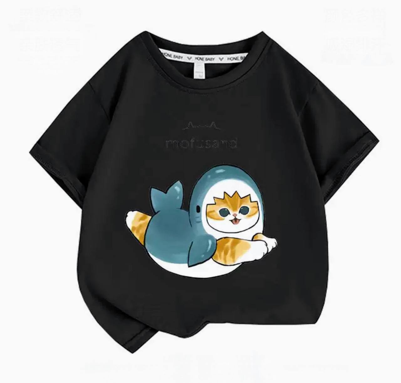 Children's T-Shirt with a Cat in a Shark Costume – Black