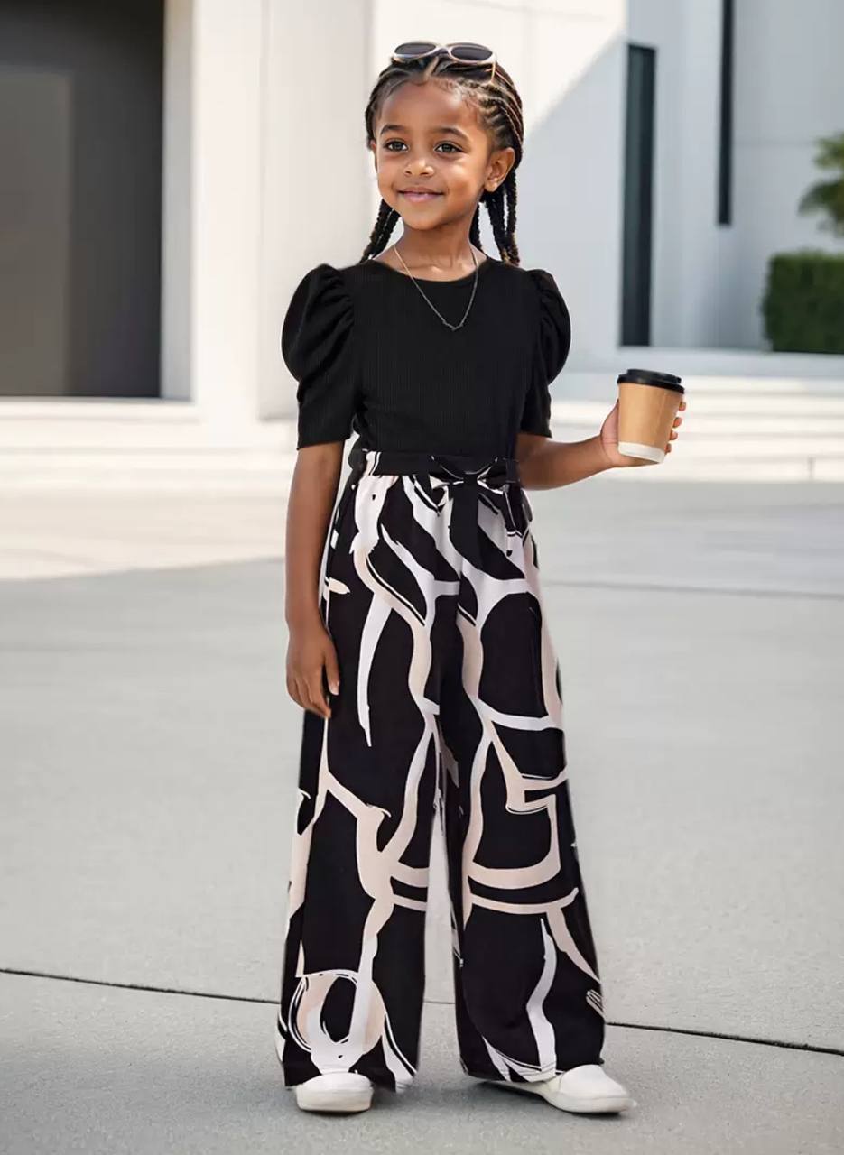 Lightweight kids' outfit (pants and T-shirt) in black and white