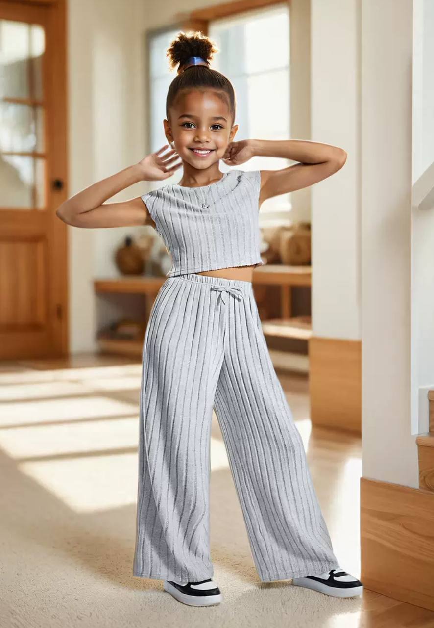 Light Children's Outfit (Pants and T-Shirt) in Gray Stripes