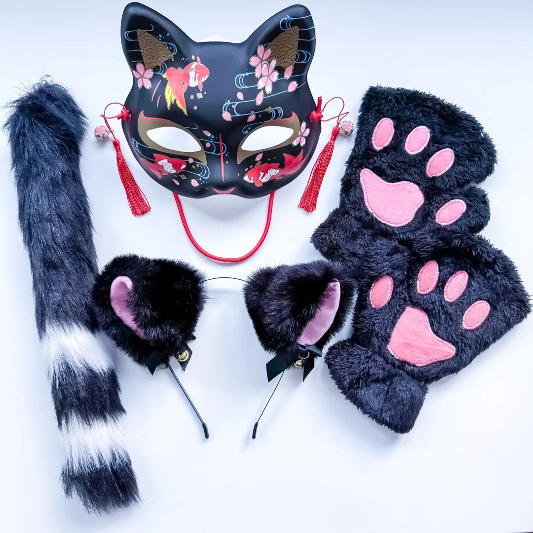 Quadrobics Set (Mask, Paws, Ears, Tail with Carabiner) - Black