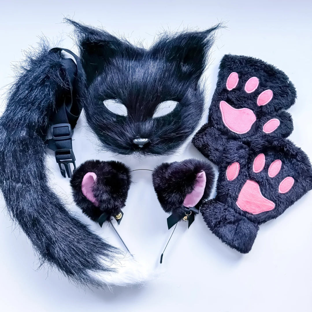 Quadrobics Costume Set (Mask, Paws, Ears, Tail on Strap) - Black