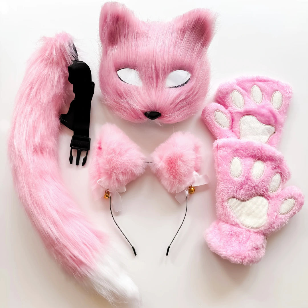 Quadrobics Costume Set (Mask, Paws, Ears, Tail on Strap) - Pink