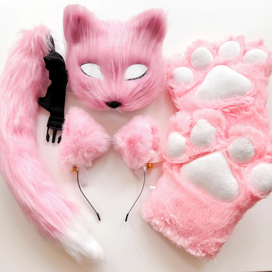 Quadrobics Costume Set (Mask, Large Paws, Ears, Tail on Strap) - Pink