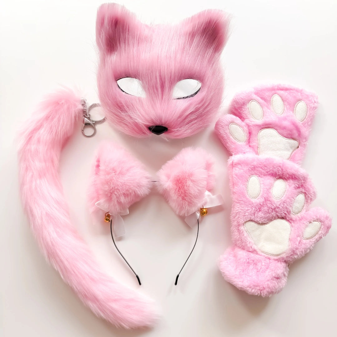 Quadrobics Costume Set (Mask, Paws, Ears, Tail with Carabiner) - Pink