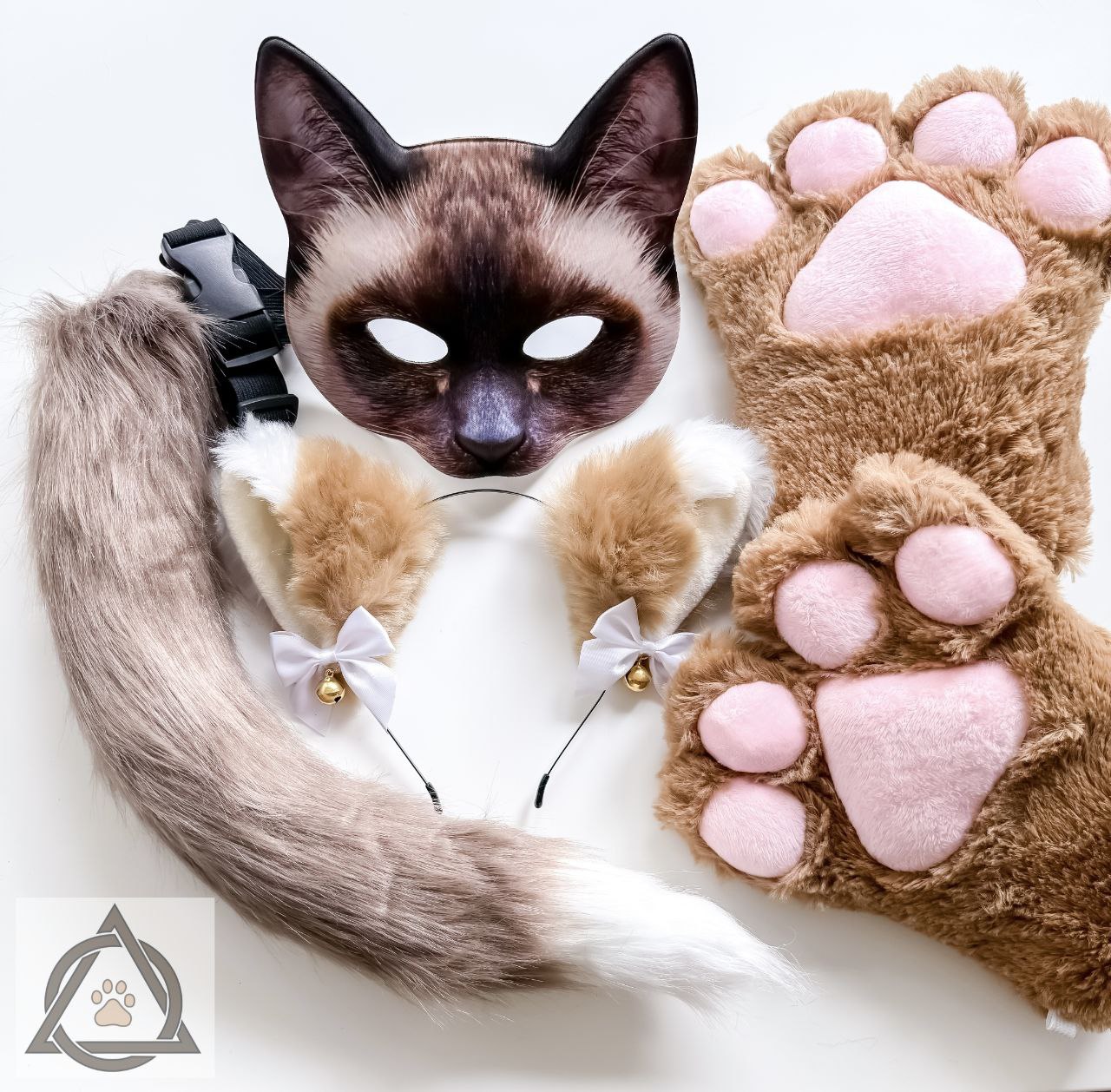 Quadrobics Set (mask, large paws, ears, tail on strap) - Ginger