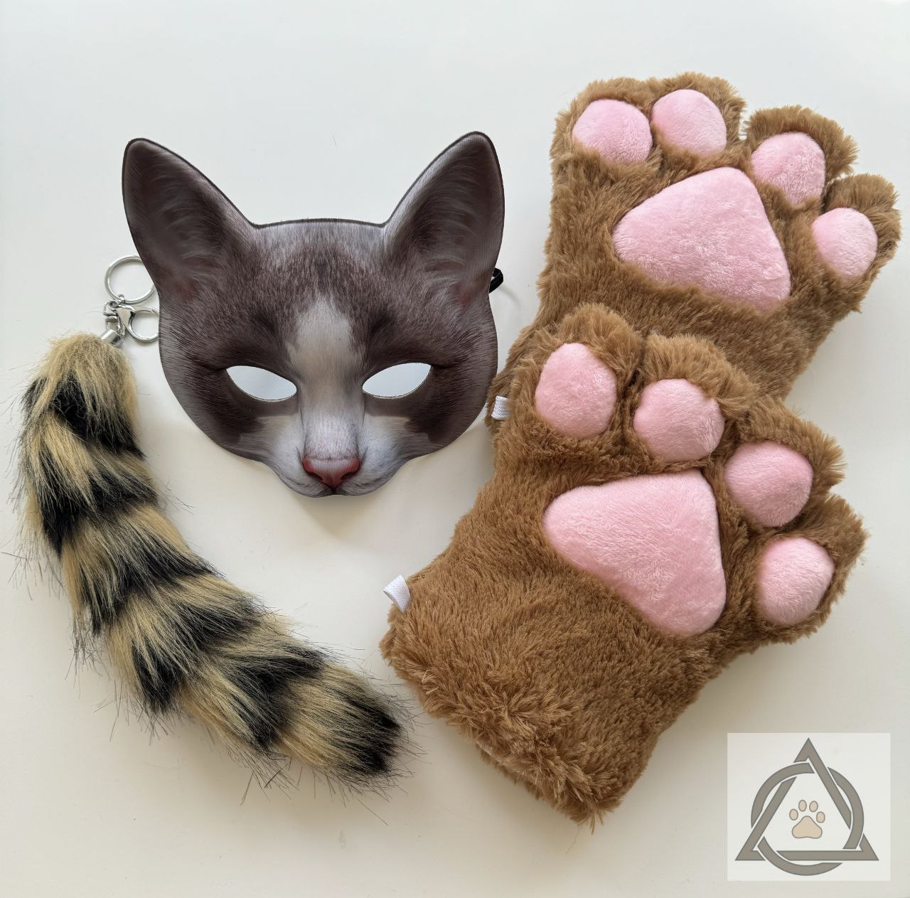 Quadrobics Set (Mask, Large Paws, Tail with Carabiner) - Brown