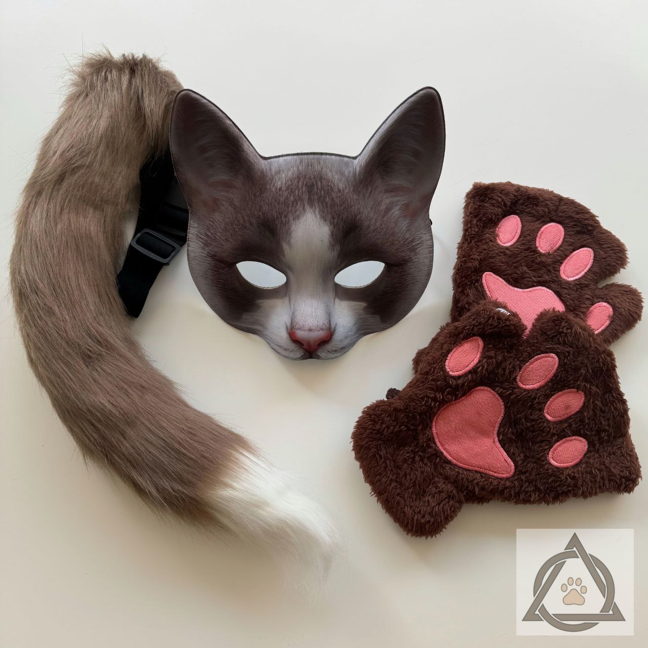 Quadrobics Set (Mask, Paws, Tail on Strap) - Brown