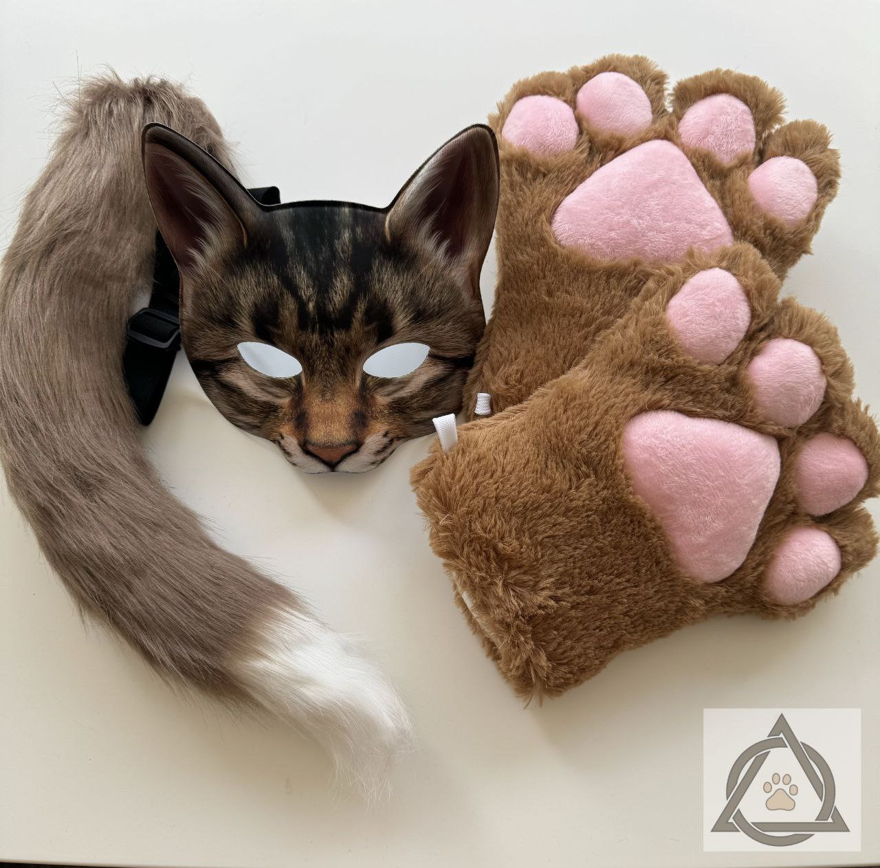 Quadrobics Set (mask, large paws, tail on strap) – Brown