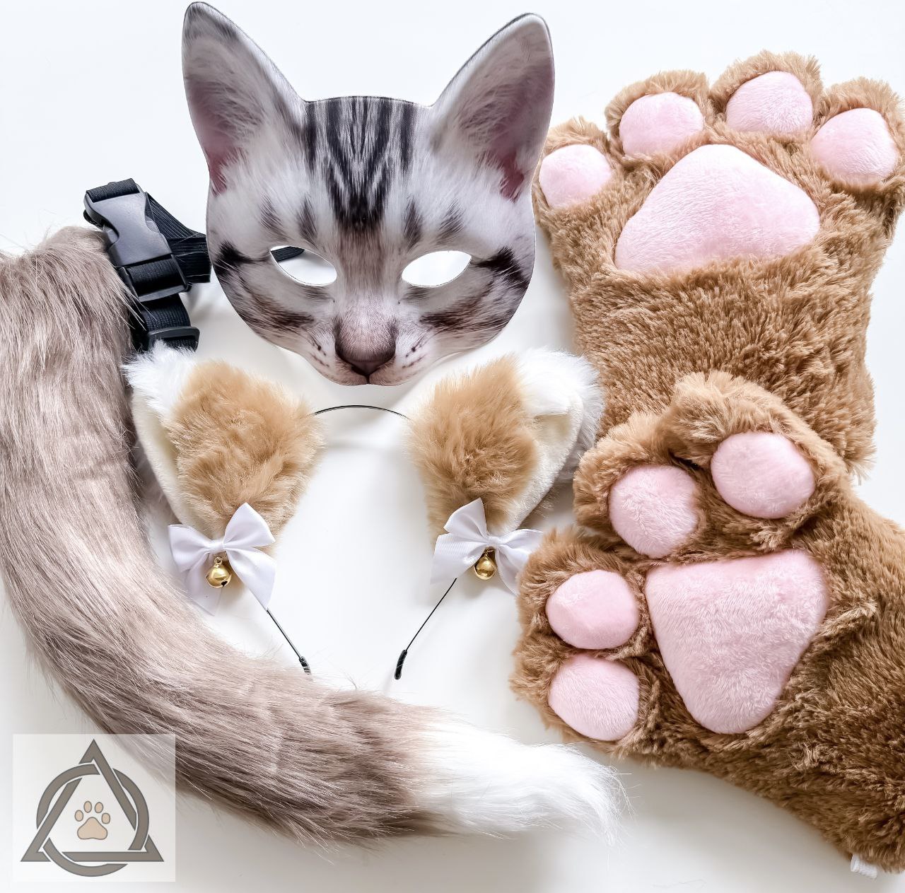 Quadrobics Set (Mask, Large Paws, Ears, Tail on Strap) - Ginger