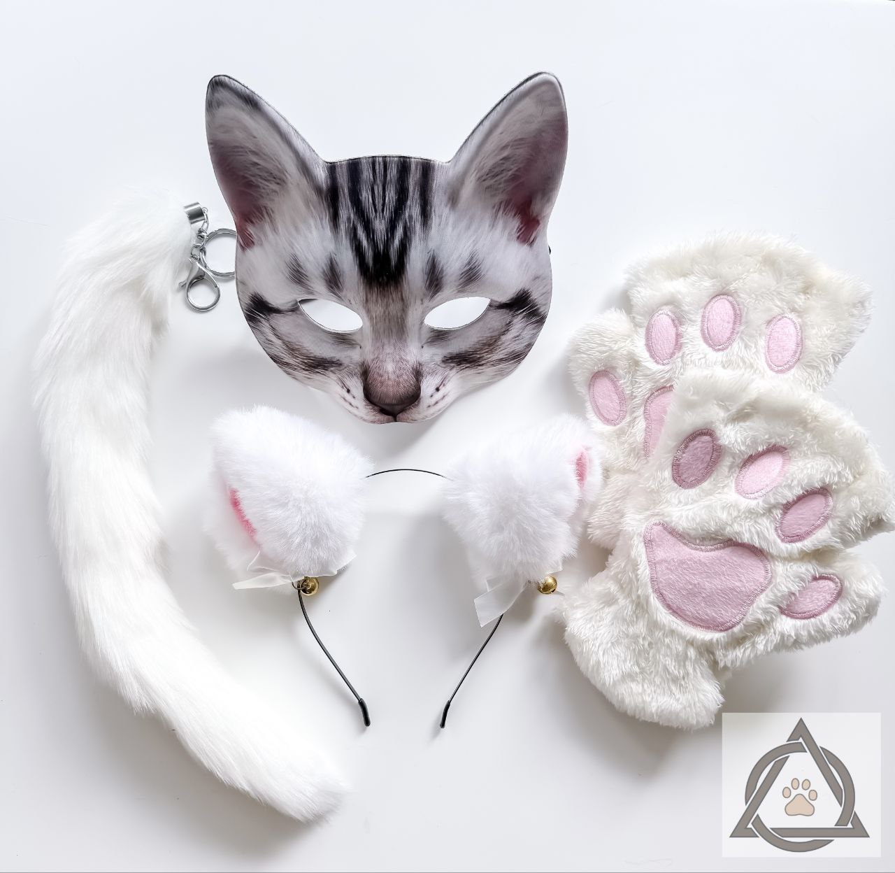 Quadrobics Costume Set (Mask, Paws, Ears, Tail with Carabiner) White