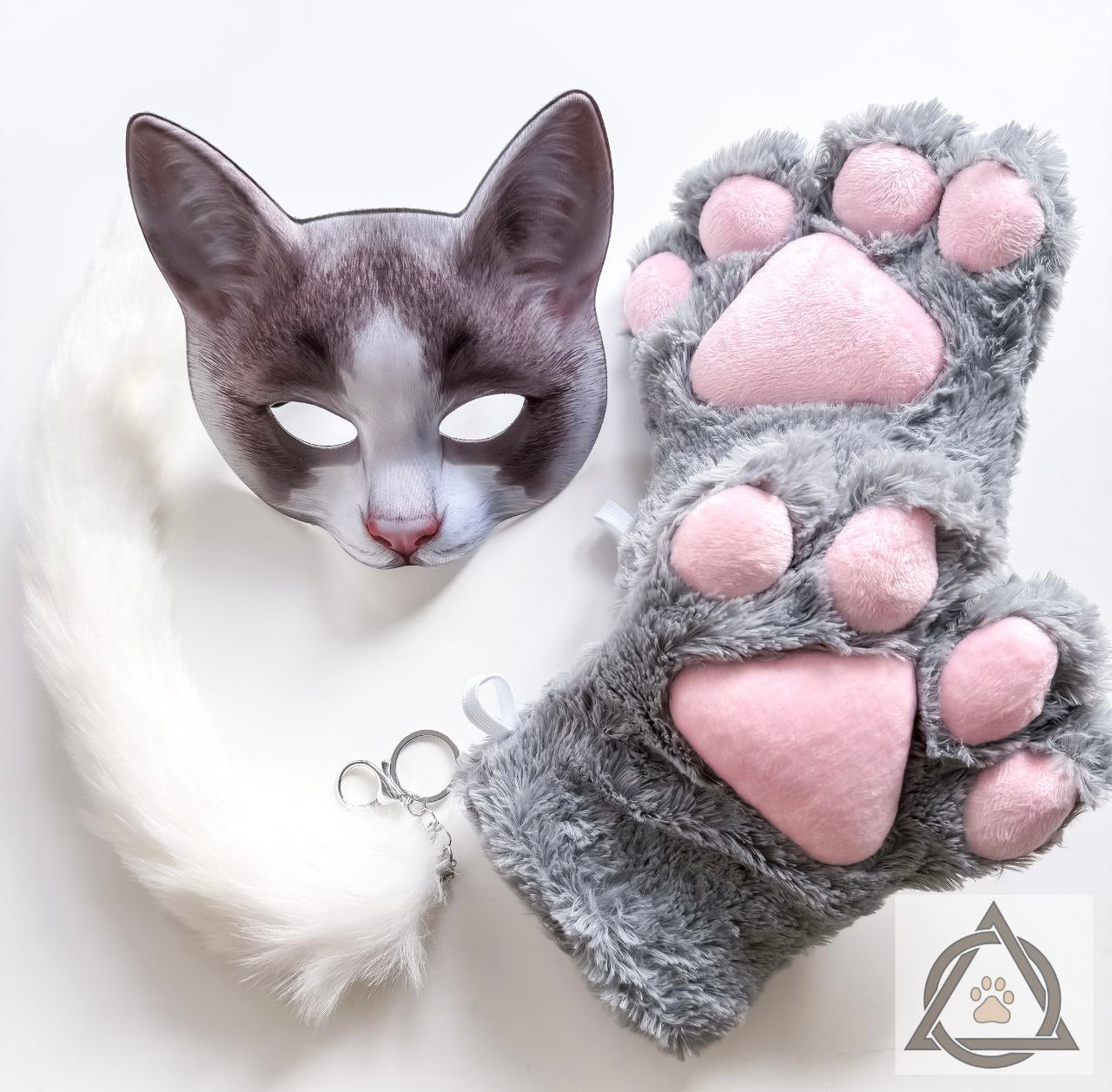 Quadrobics Set (Mask, Large Paws, Tail with Carabiner) Gray