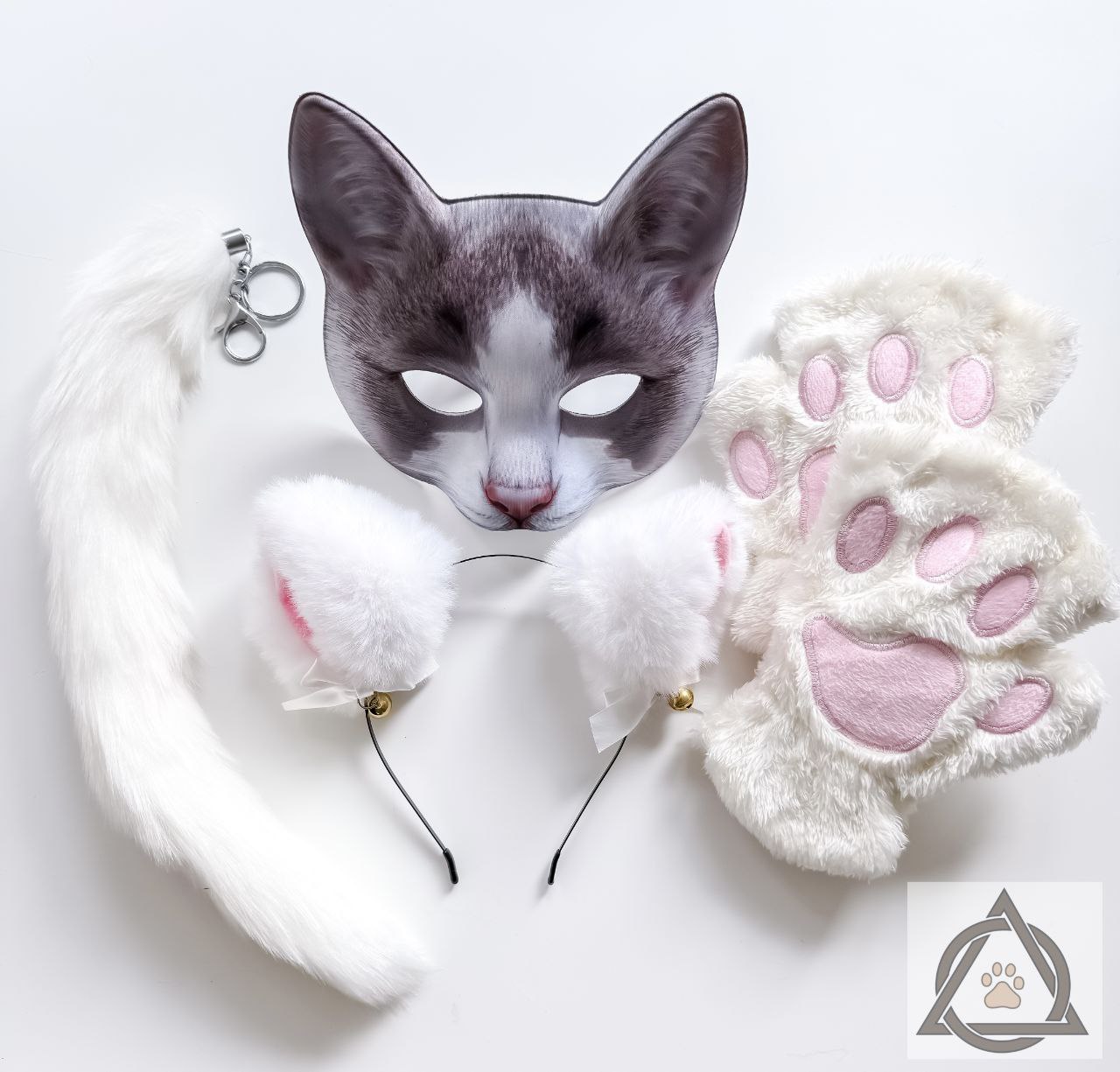 Quadrobics Set (Mask, Paws, Ears, Tail with Carabiner) White