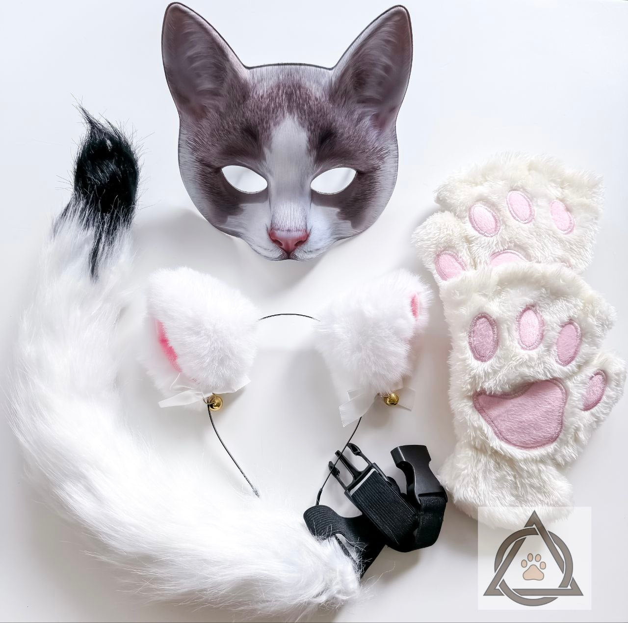 Quadrobics Set (mask, paws, ears, tail on a strap) White