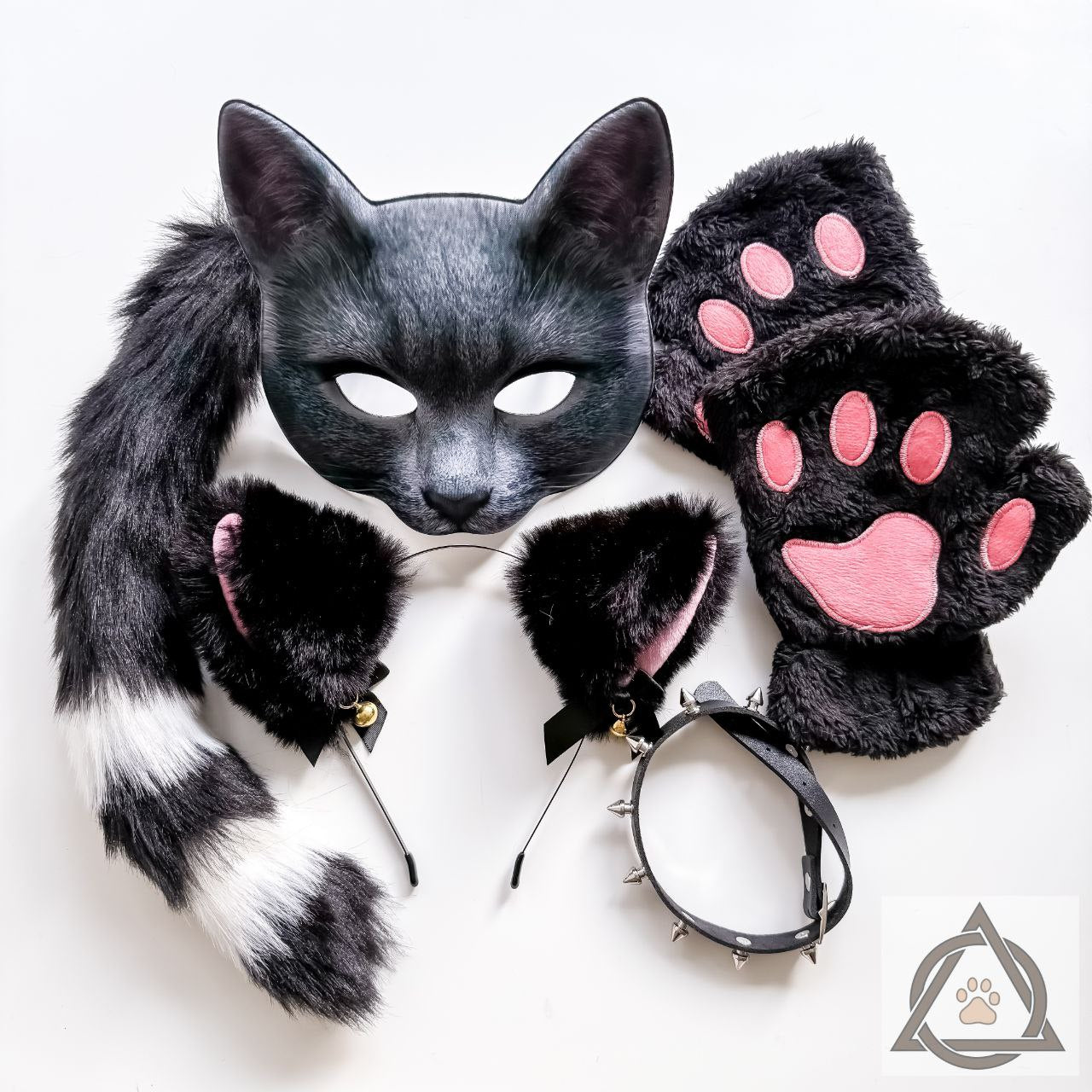 Quadrobics Costume Set (Mask, Paws, Ears, Tail with Carabiner, Choker) Black