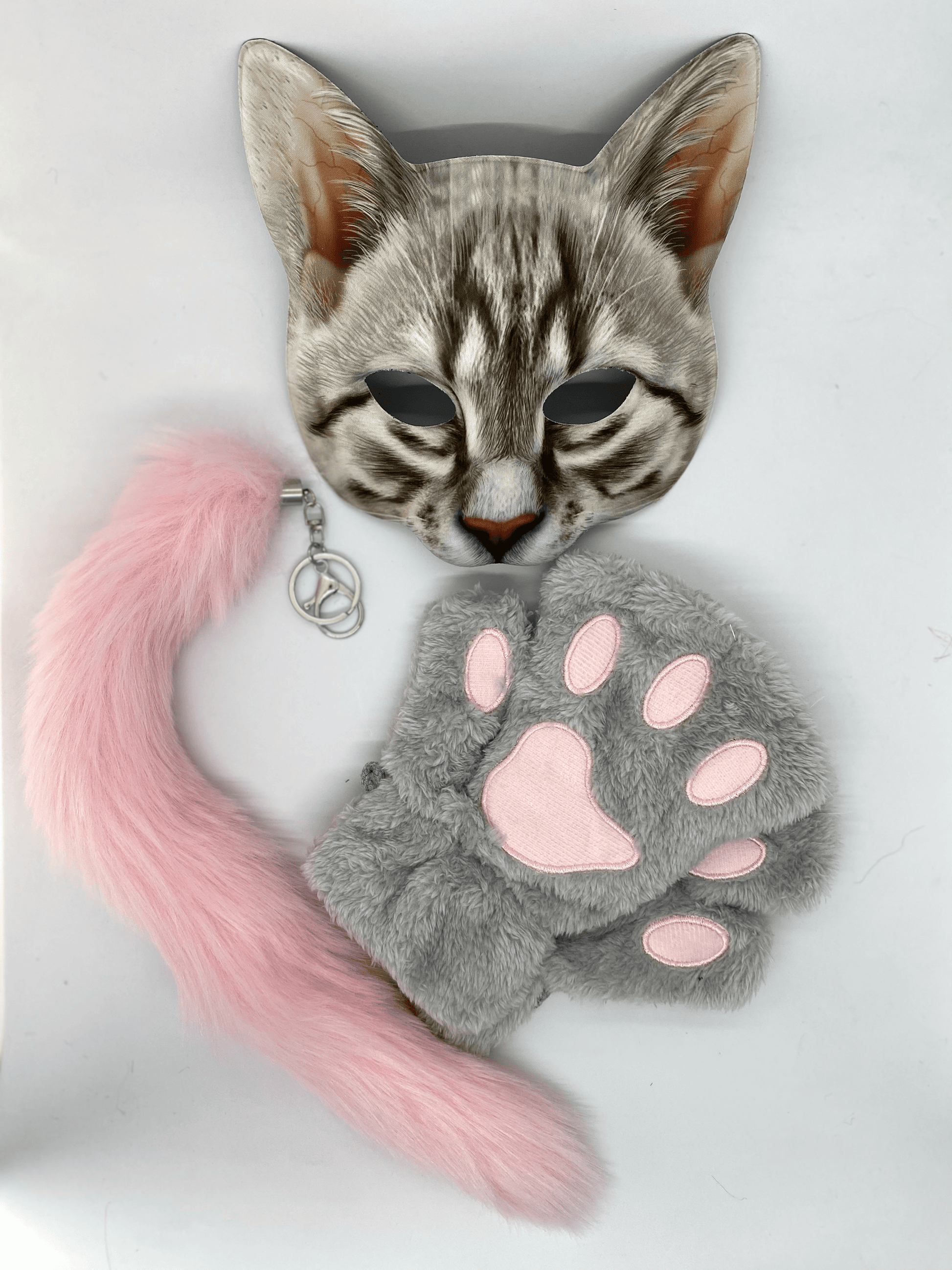 Quadrobics Set (Mask, Paws, Tail with Carabiner) Pink-Gray