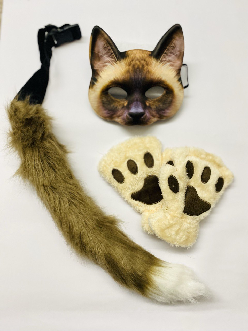 Quadrobics Set (mask, paws, tail on a strap) – Brown
