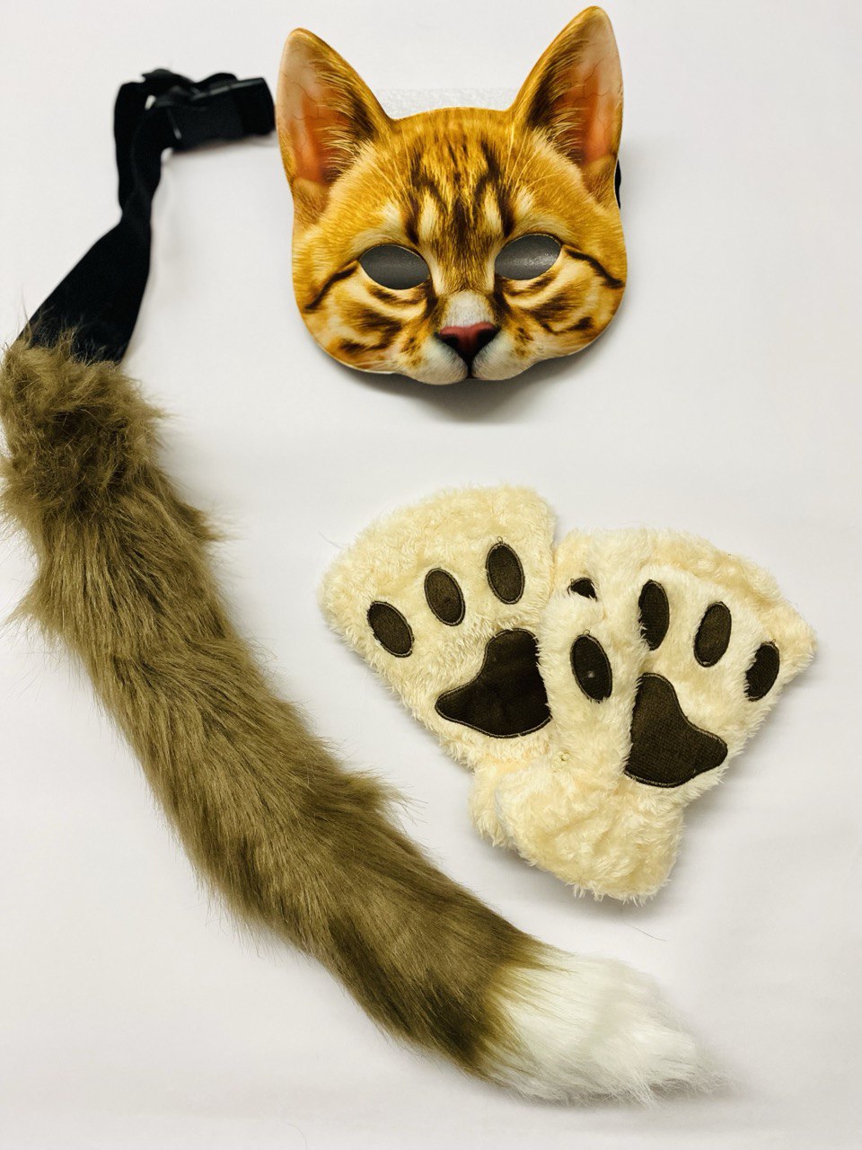 Quadrobics Set (mask, paws, tail on a strap) – Brown