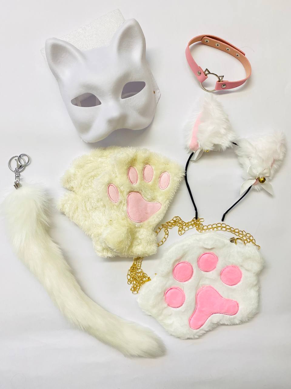 Quadrobics Set (mask, paws, ears, tail with carabiner, choker, bag) White