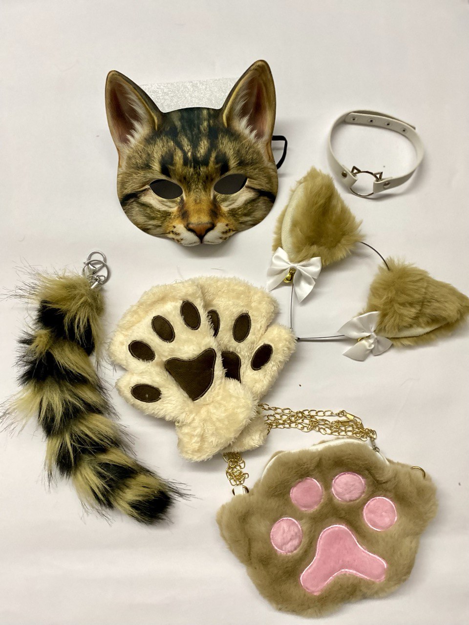 Quadrobics Set (mask, paws, ears, tail with carabiner, choker, bag) – Brown