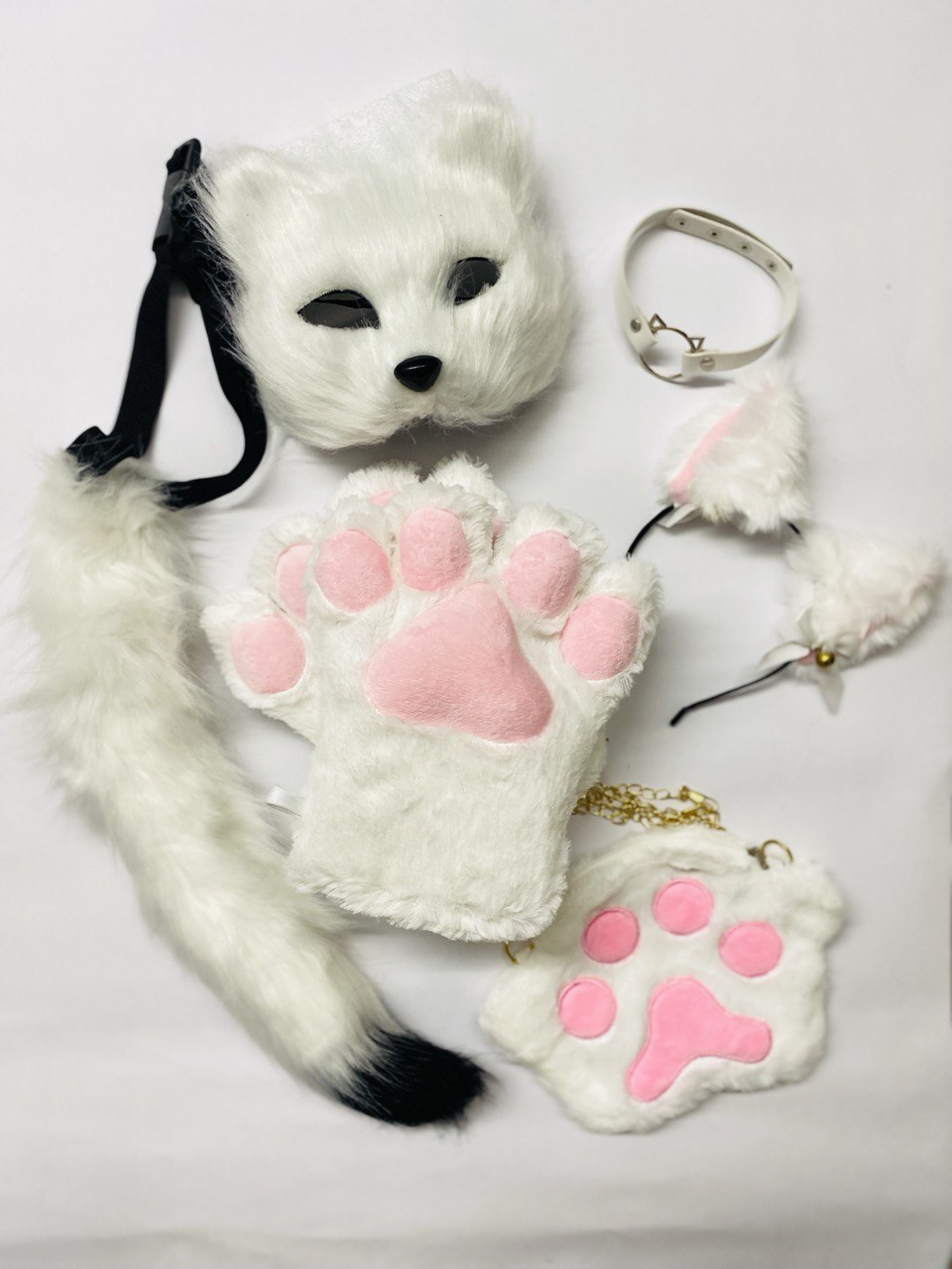 Quadrobics Play Set (mask, large paws, ears, tail on a strap, choker, bag) White