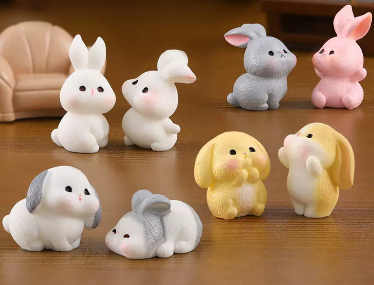 This set of rabbit figurines makes a perfect gift for fans of cute and unique accessories. The collection includes eight detailed figures, each depicting a rabbit with a distinctive face and a variety of colors. Crafted with intricate detail, these figurines highlight the personality and mood of each rabbit. They can be used as charming decorations for your home or office, or as adorable statuettes on shelves.