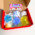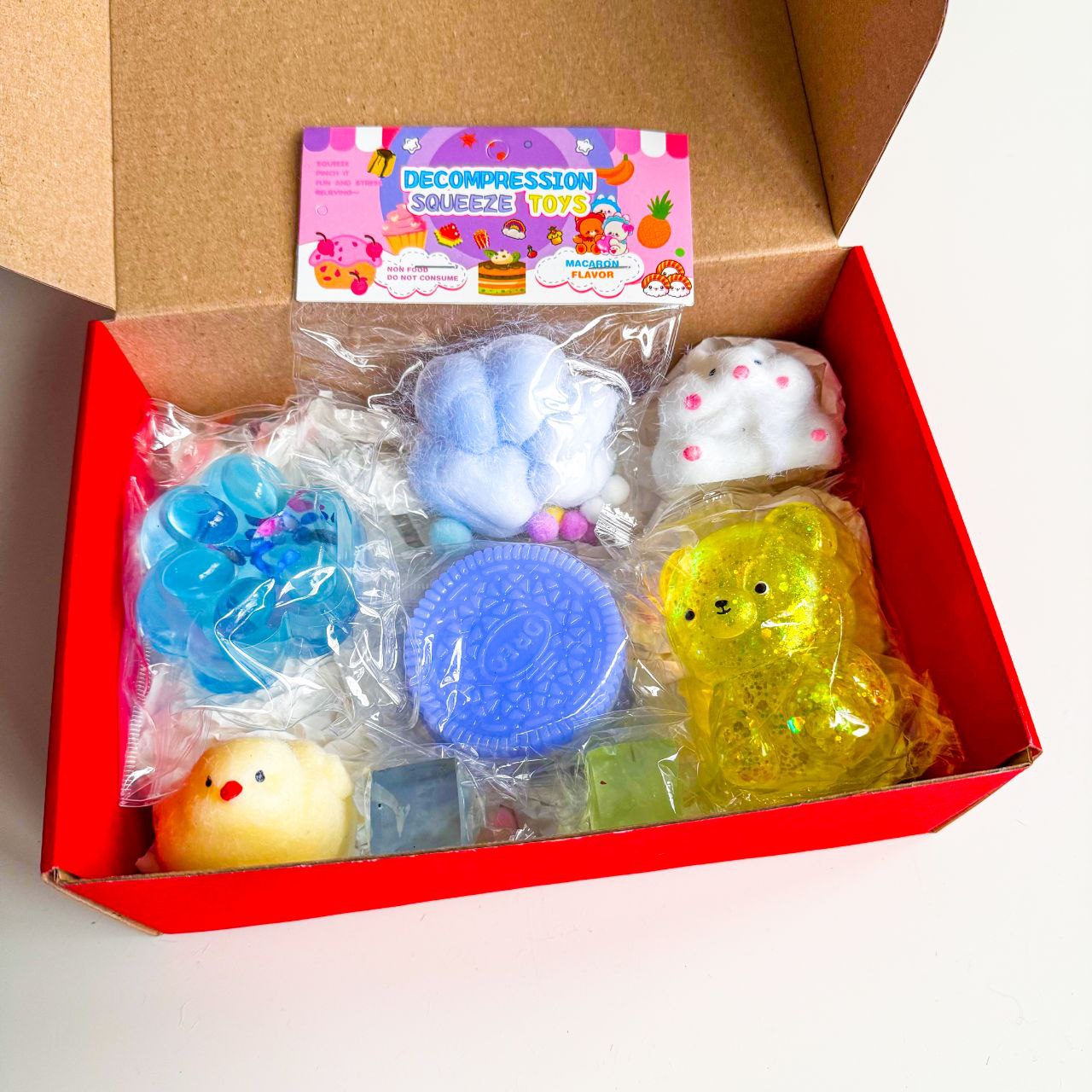 This squish set is the perfect way to relieve stress and boost your mood. Its soft, elastic texture feels pleasant to the touch and is highly responsive to squeezing. Squishies help you relax and unwind after a long day. Compact enough to fit in a bag or on your desk, they’re always within reach whenever you need a moment of calm. This set makes a wonderful and popular gift for children of all ages. Included are: Oreo squish, hamster, chick, teddy bear, 7cm paws, and 2.5cm ice.