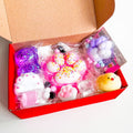 This squish set is the perfect solution for stress relief and mood boosting. Its soft, elastic texture feels pleasant to the touch and is highly responsive to squeezing. Squishes help you relax and unwind after a long day. Compact enough to fit in your bag or on your desk, so you'll always have a little moment of calm nearby. This set makes a wonderful and popular gift for kids of all ages. Included are: hamster squish, chick squish, teddy bear squish, 4cm, 6cm, and 11cm paws, and a squish ice cube.