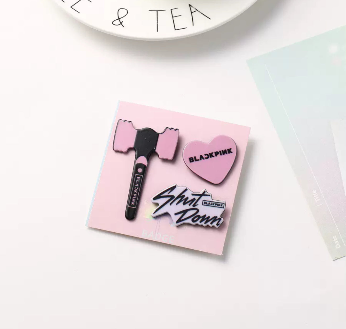 A stylish set of pins for true K-pop fans! This collection includes three uniquely designed pins inspired by the popular girl group. They feature the group's signature colors and detailed craftsmanship that highlight their exclusivity. Perfect for backpacks, clothing, or your fan accessory collection. Add a vibrant touch to your look or give an amazing gift to a friend who shares your love for K-pop culture!