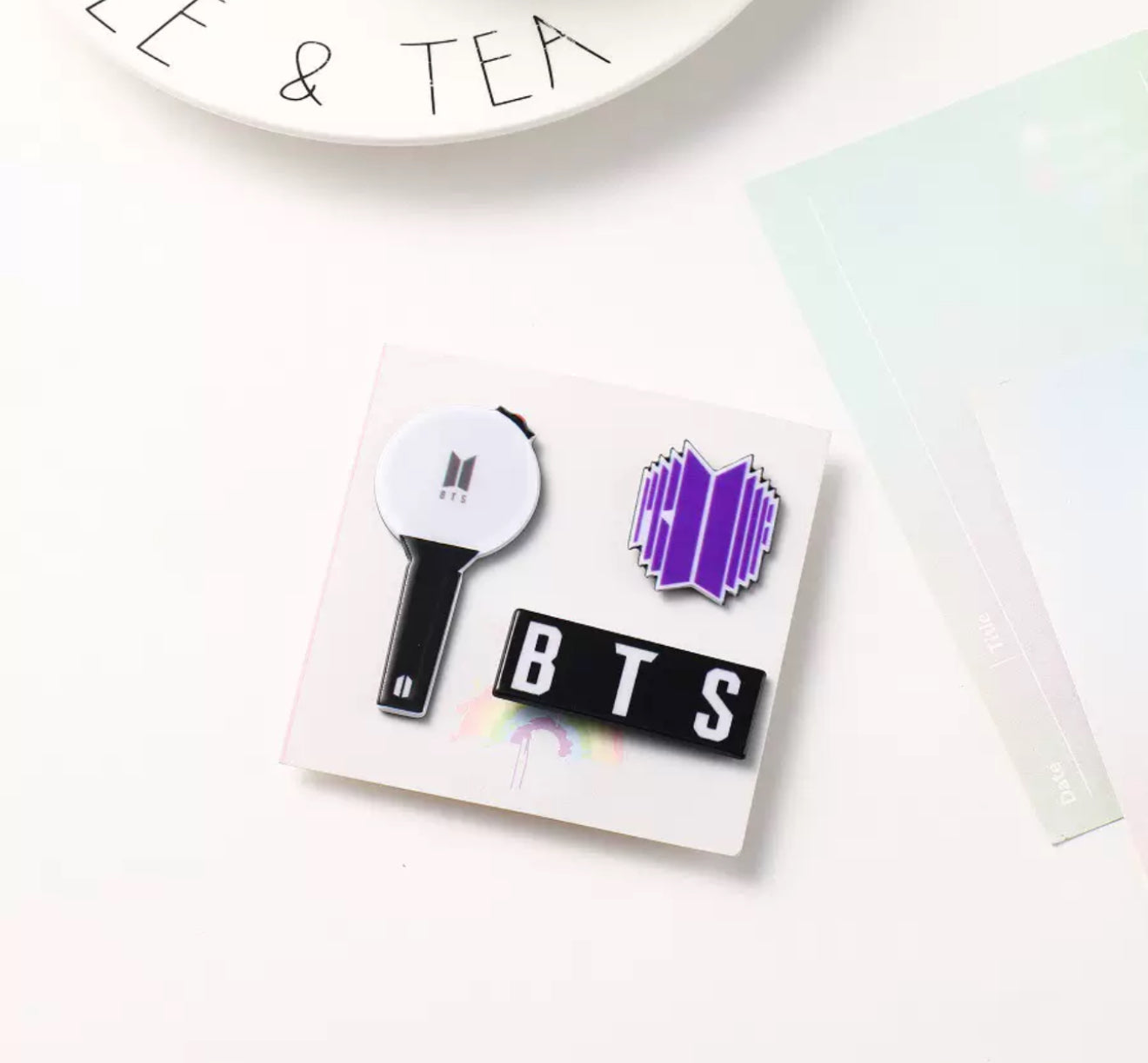 A stylish set of pins for true K-pop fans! This collection includes three uniquely designed pins inspired by the popular band. They feature signature colors and sharp details that highlight their exclusivity. Perfect for backpacks, clothing, or your fan accessory collection. Add a vibrant touch to your look or give a fantastic gift to a friend who shares your love for K-pop culture!