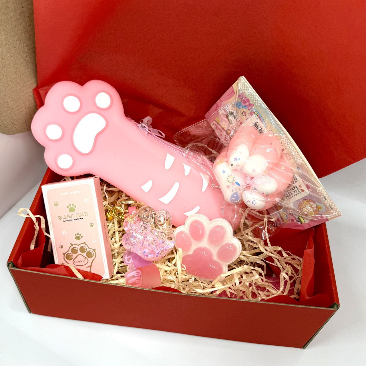 Gift Set "Cat Paw" (pencil case, paw-shaped sticker, balm, keychain, pop socket)