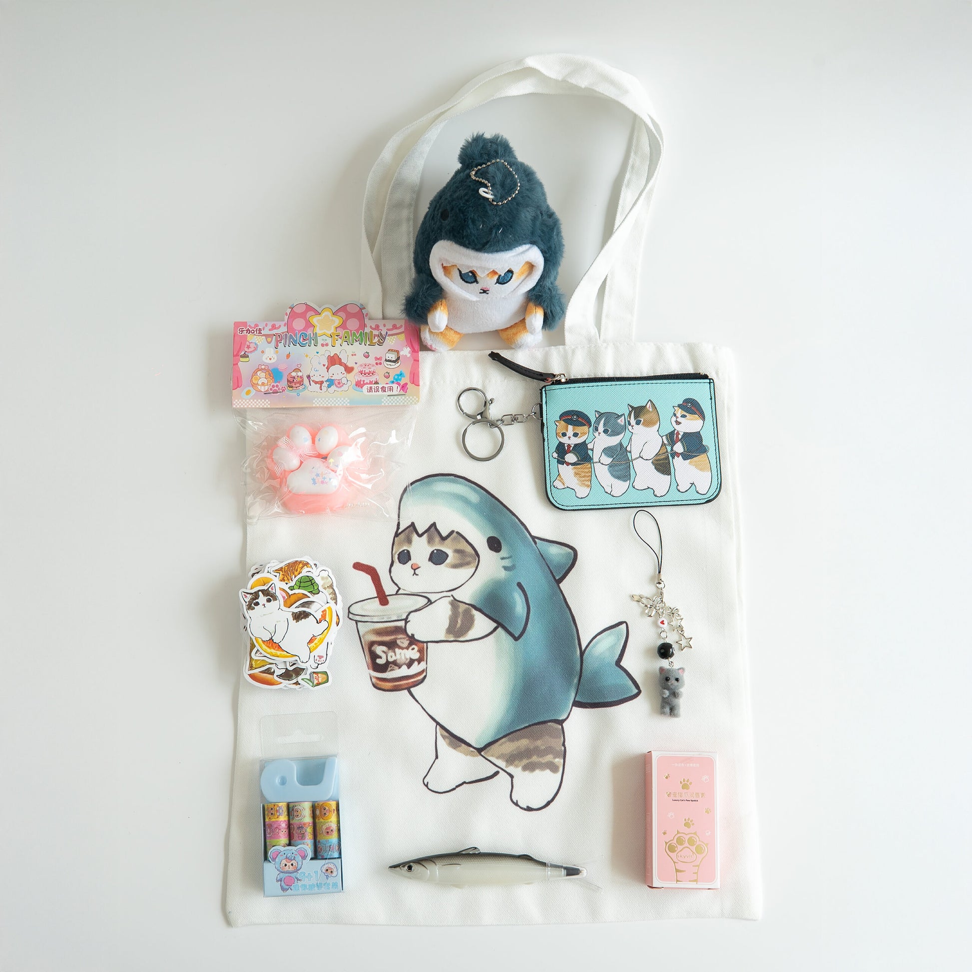 Gift Set "Kittens" (shopping bag, plush toy, wallet, keychain, stickers, washi tape, pen, paw balm)