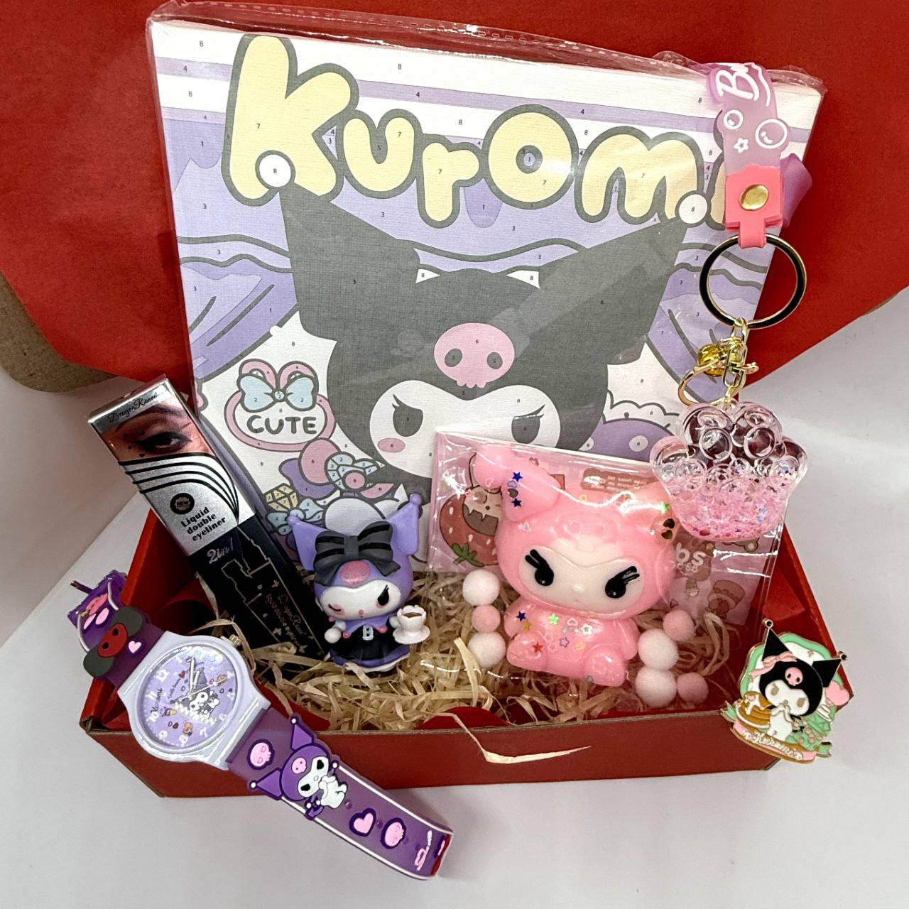 Kuromi Gift Set (painting, clock, Taba Squish, badge, figurine, keychain, eyeliner)