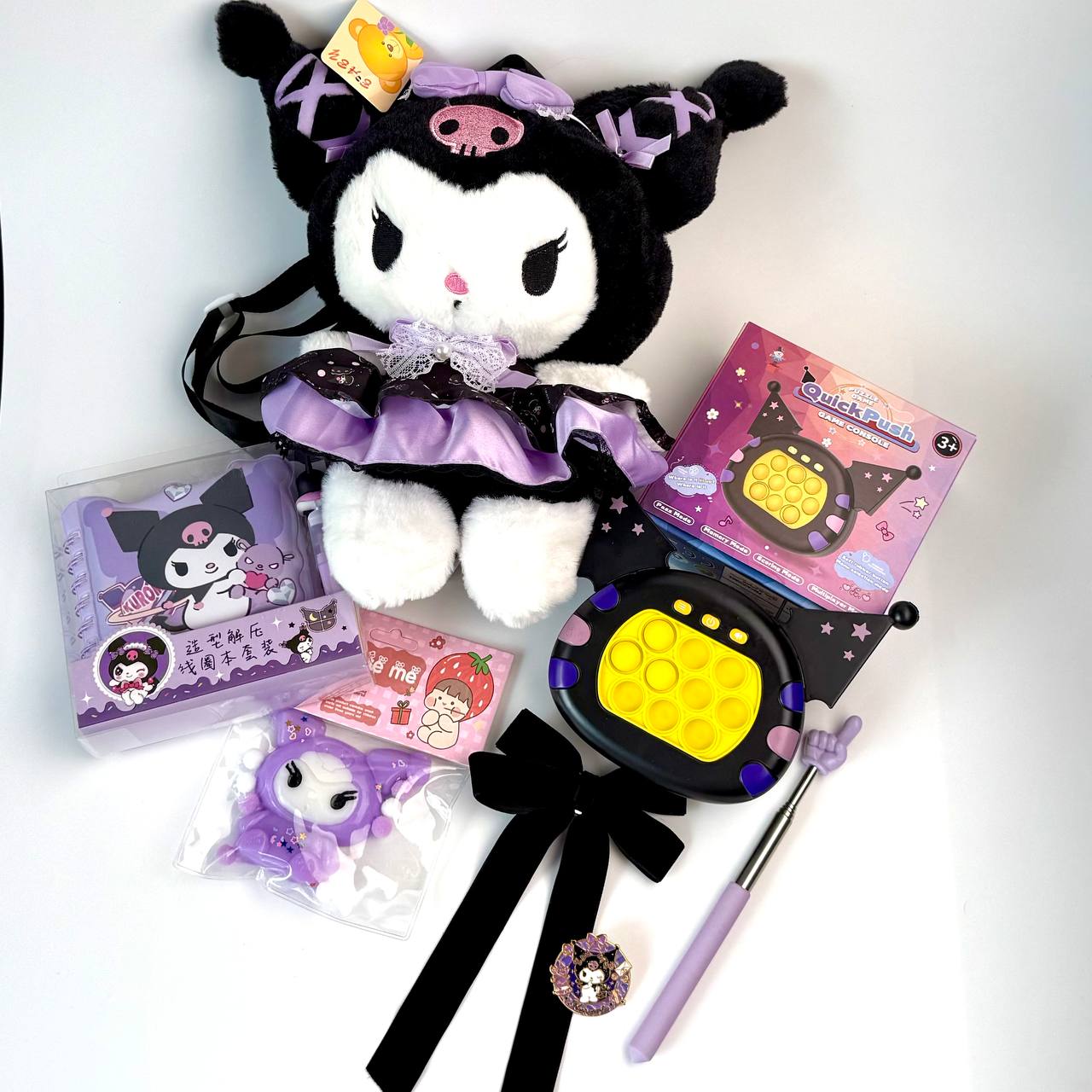 Kuromi Gift Set (toy backpack, Pop-It, squishy, pointing stick, pin, bow, notebook + marker)