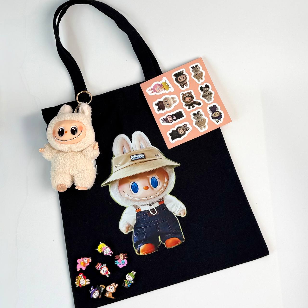 Labubu Gift Set (Tote Bag, Toy, Stickers, Jibitsi)
